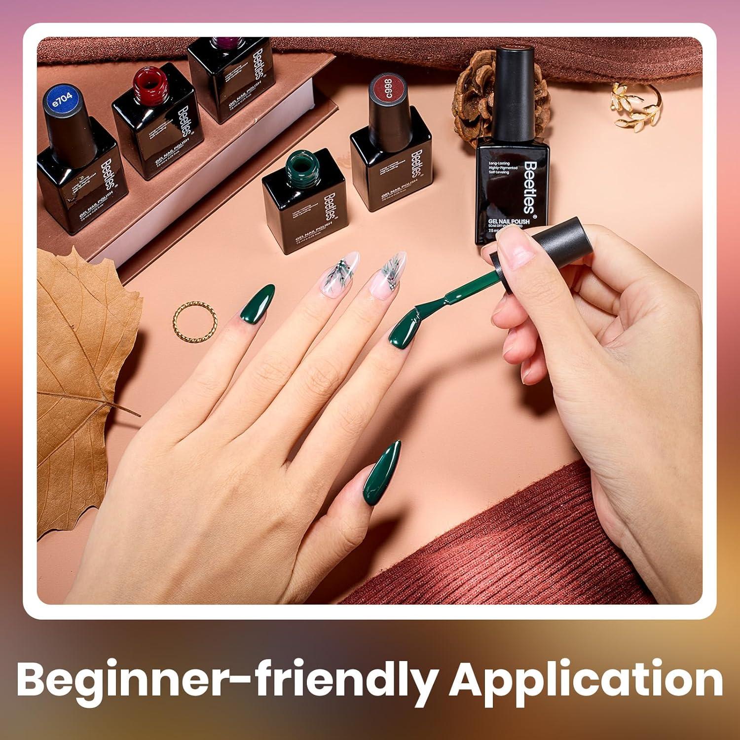 【Speed Curing with LED Nail Lamp】The capacity of Beetles gel polish set is 7.5ml/0.25 Fl Oz. Pink nail polish gel needs to be cured under LED light, with an average time of 60-120 seconds for LED light. It will still remain sticky after curing, which helps the gel color better adhere to the nails, but once our wipe free finish is applied and cured, your nails will be complete!