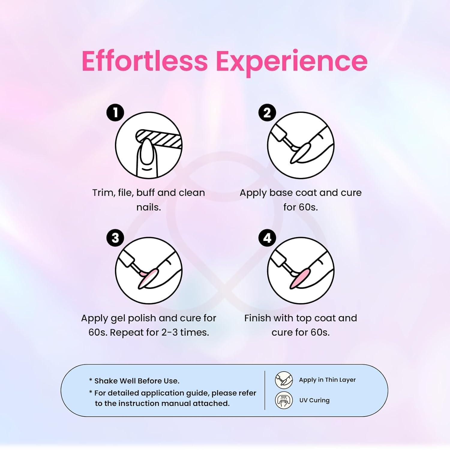 【Easy to Use & Remove】Our gel polish pink set uses a brush that is easier to smooth and evenly apply. Whether you are a novice of gel nails or a professional manicurist, you can easily master this set of . When removal is needed, simply soak in acetone remover for 10 minutes and gently peel off – do not scratch or damage your natural nails.
