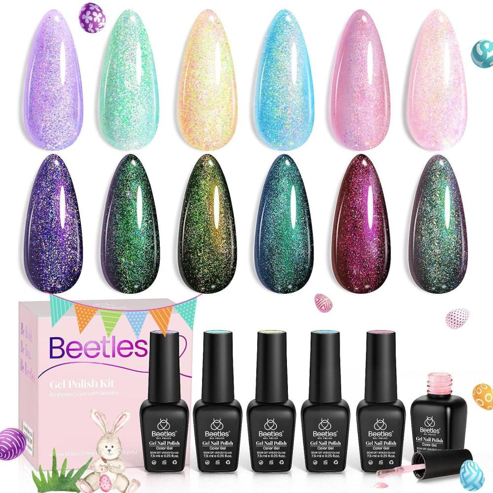 imageBeetles Easter Gel Polish Set  Blush Cotton 6 Colors Pink Gel Polish Set Jelly Glitter Pearl Nude Hot Pink Spring Easter Nails Salon Long Lasting Soak Off UV LED Nail Lamp Gifts for HerNebula Halo