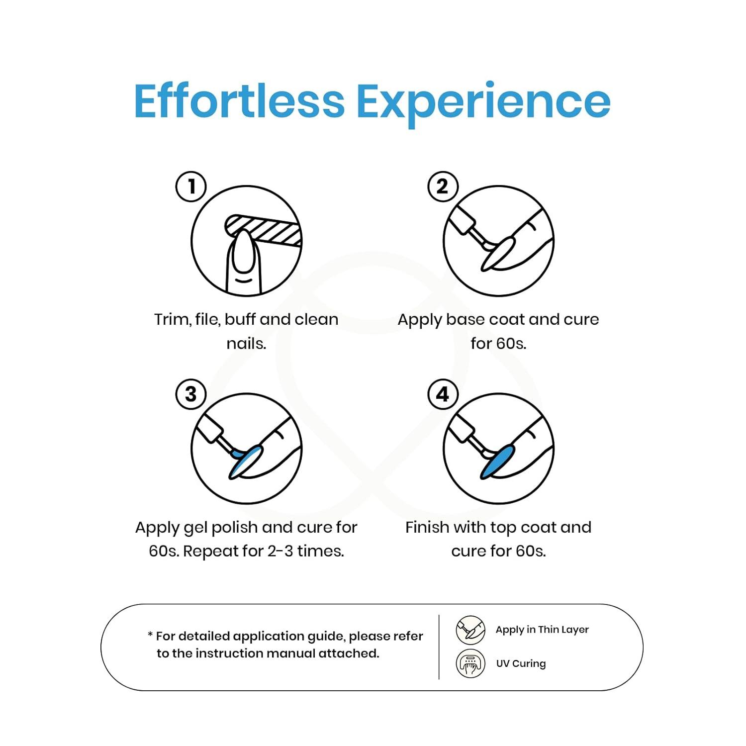 【Speed Curing with LED Nail Lamp】The capacity of Beetles gel polish set is 7.5ml/0.25 Fl Oz. Pink nail polish gel needs to be cured under LED light, with an average time of 60-120 seconds for LED light. It will still remain sticky after curing, which helps the gel color better adhere to the nails, but once our wipe free finish is applied and cured, your nails will be complete!