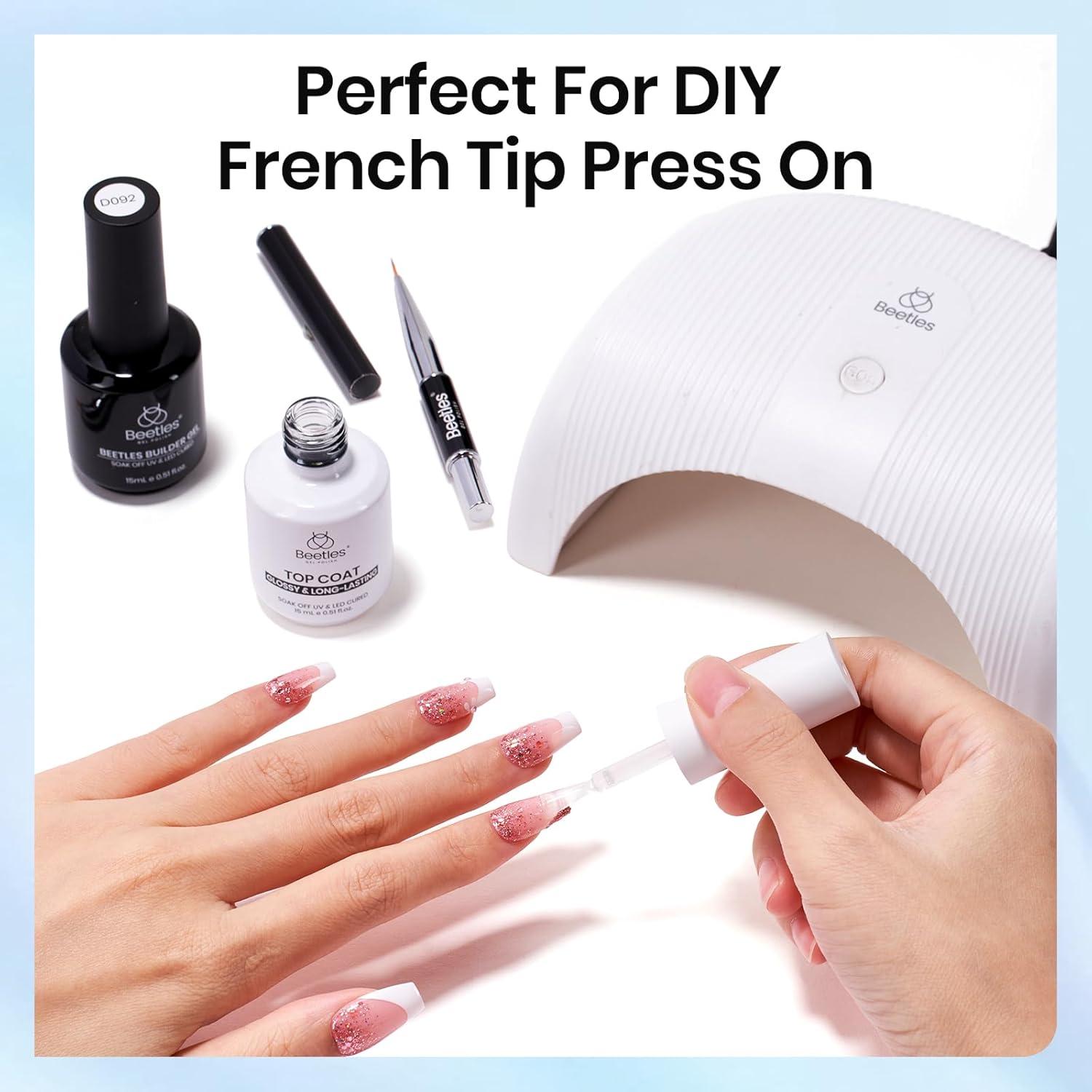 Beetles Extra Glossy No Wipe Gel Top Coat, 2 Pcs 15ml Super Shiny Clear Glossy Top Coat Gel Nail Polish, Soak Off Uv Nail Lamp Nail Salon Manicure DIY Home Gifts for Women(Builder Gel and Nail Glue and Top Coat)