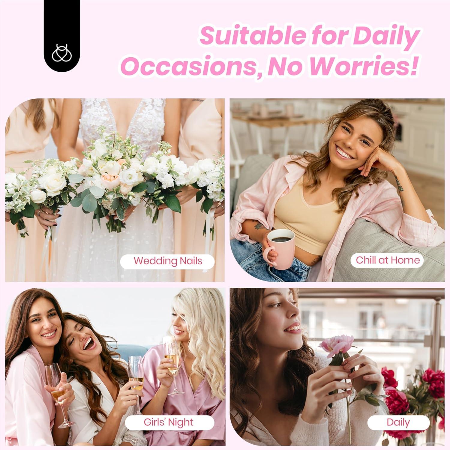 【Salon Quality & Save Money And Time】Beetles acrylic press on nails have been pre-designed with pink color gel and classic white French Tip design, making it easy to perfectly replicate the quality of a salon level manicure at home, saving you time and money!