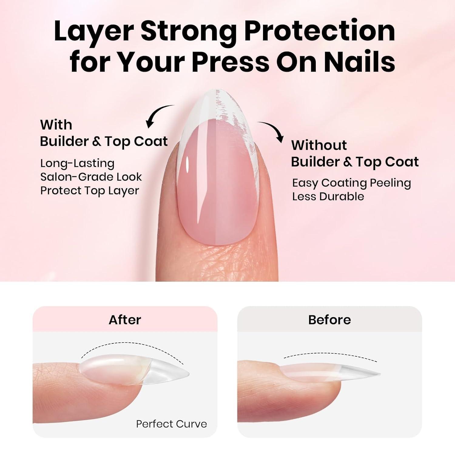 【Design Your Nail Art】These pre-designed style short almond press on nails pieces give you the freedom to design any beautiful nails you want, and you can shape, apply diamonds, and paint colors before applying Builder Top Coat to keep the perfect look. Even novice nail artists can get started quickly, and you can enjoy DIY nail art with friends and family to create your own unique creations!