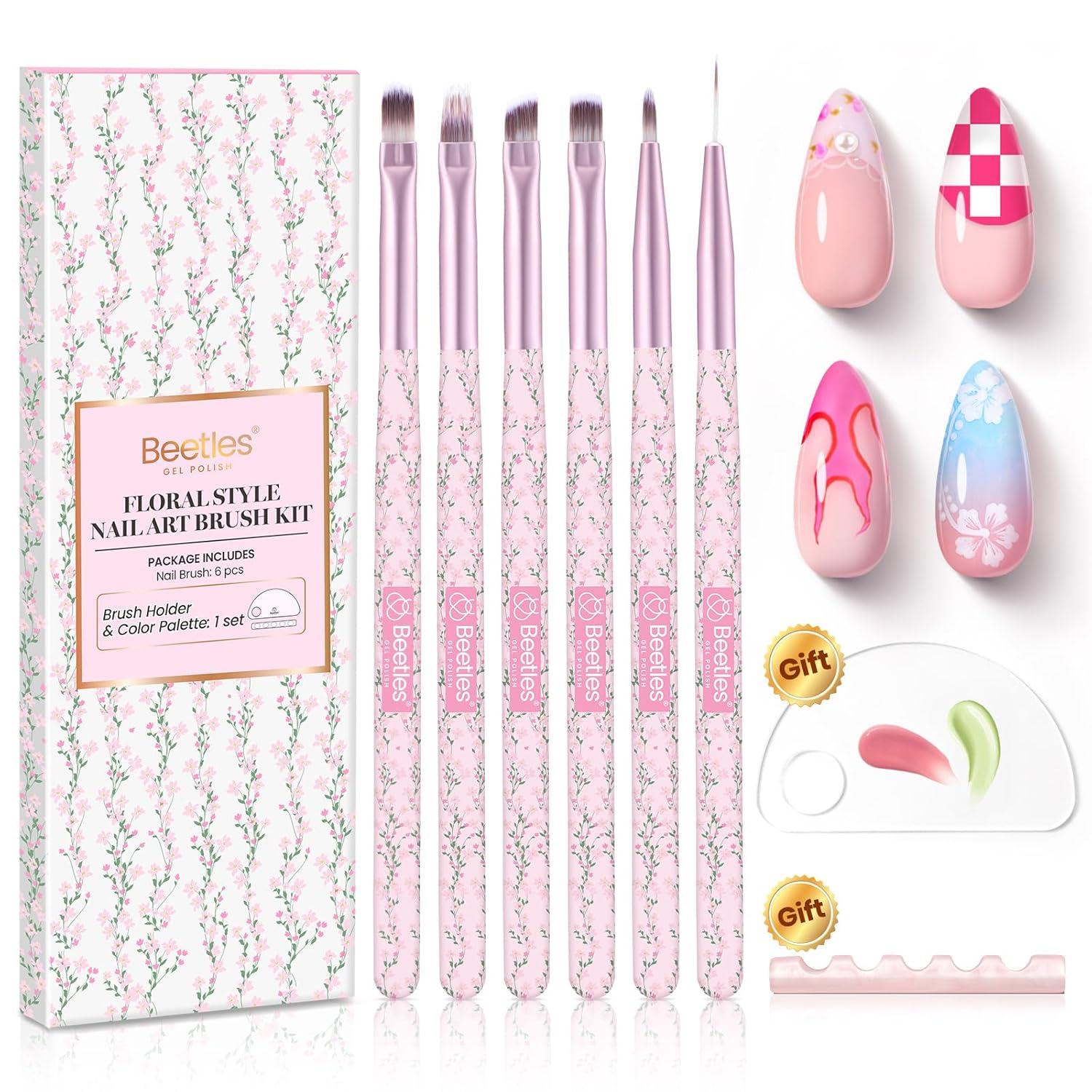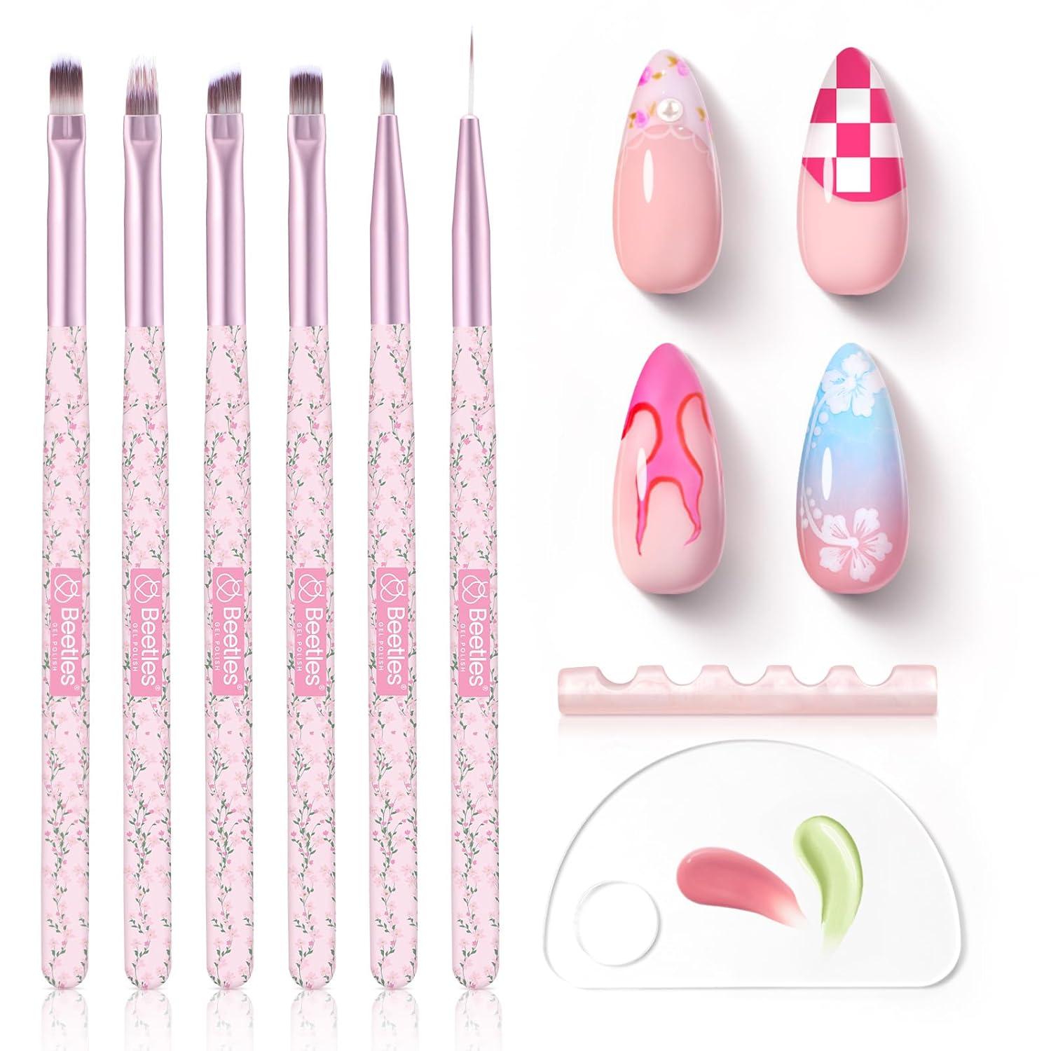 Beetles Gel Nail Art Brushes, 6 Pcs Double-Ended Fingernail Art Design Pens Gel Paint Liner Ombre Gradient French Tip Brush Dotting Pen Nail Brush Set, DIY Manicure Tools Gift for Women(6 Pcs Nail Art Brushes Set)