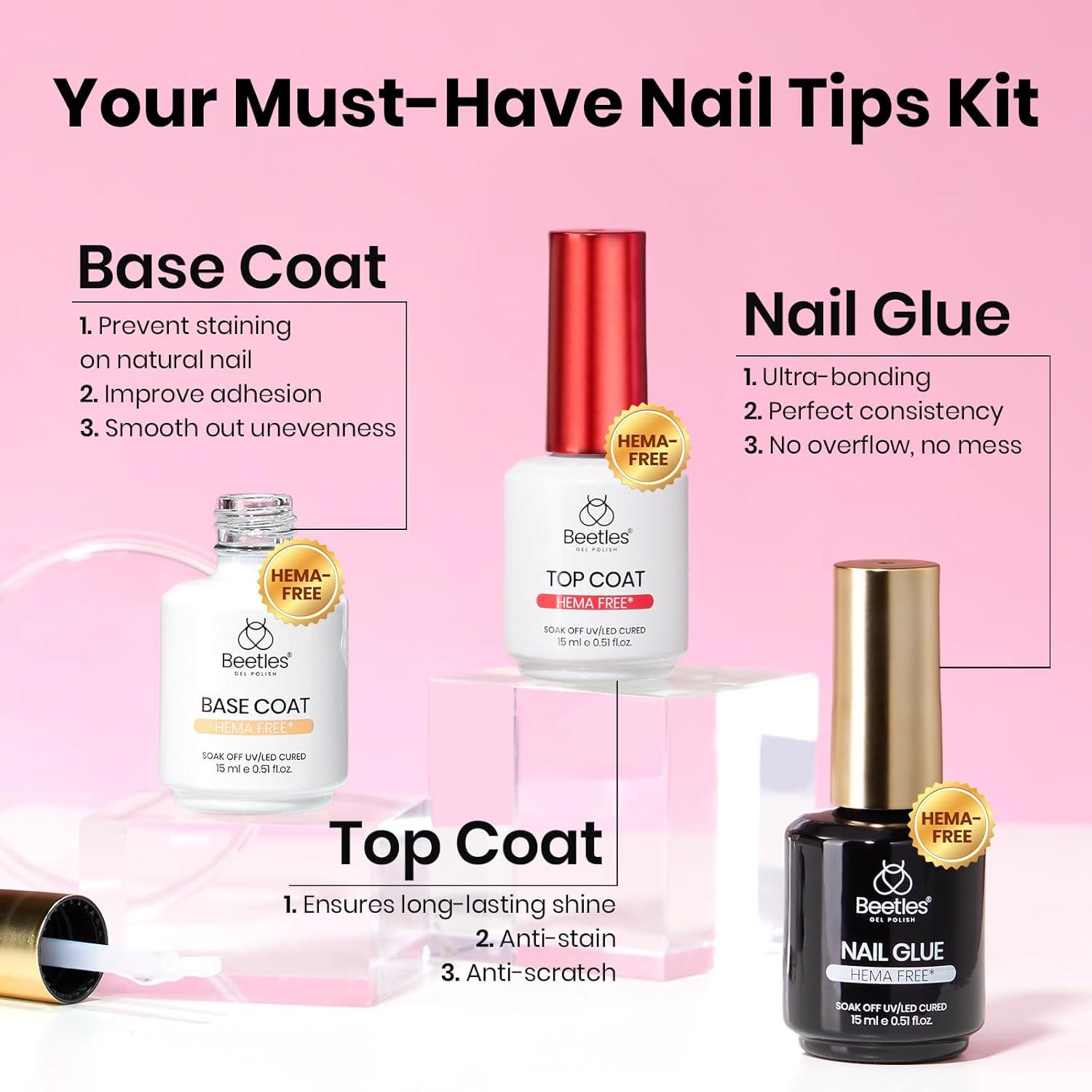 【Gentle Formula, Friendly to Sensitive Skin】– All three products in this Beetles nail kit – base coat, no-wipe top coat, and nail glue specially developed without HEMA, this nail kit is gentle and friendly for sensitive nails and skin. Enjoy stunning nails with greater peace of mind.