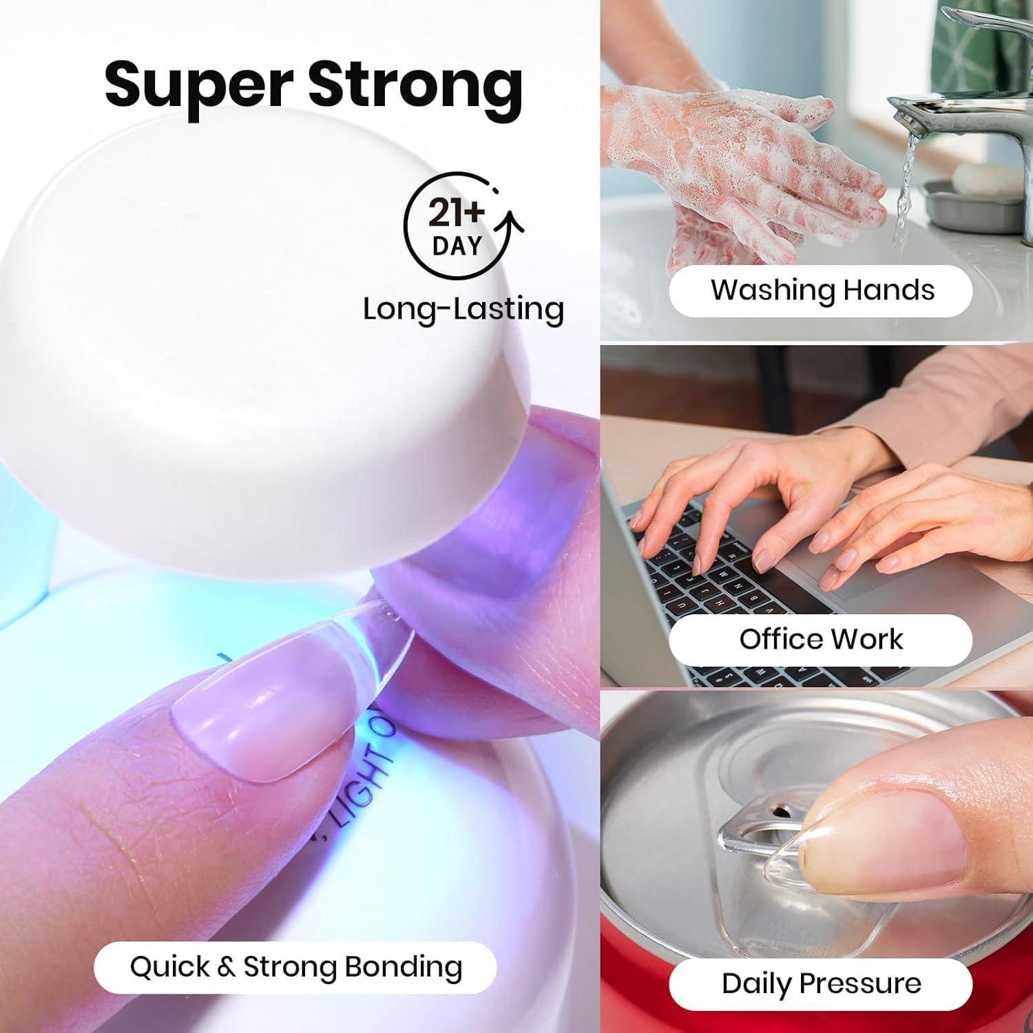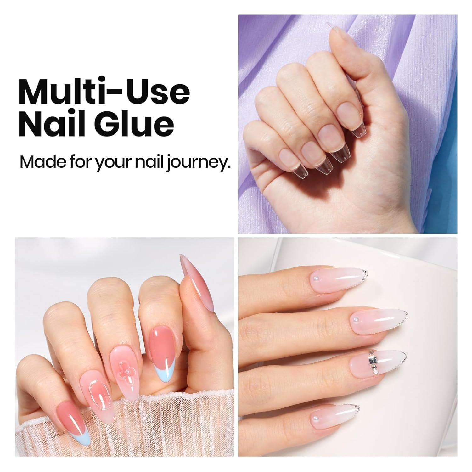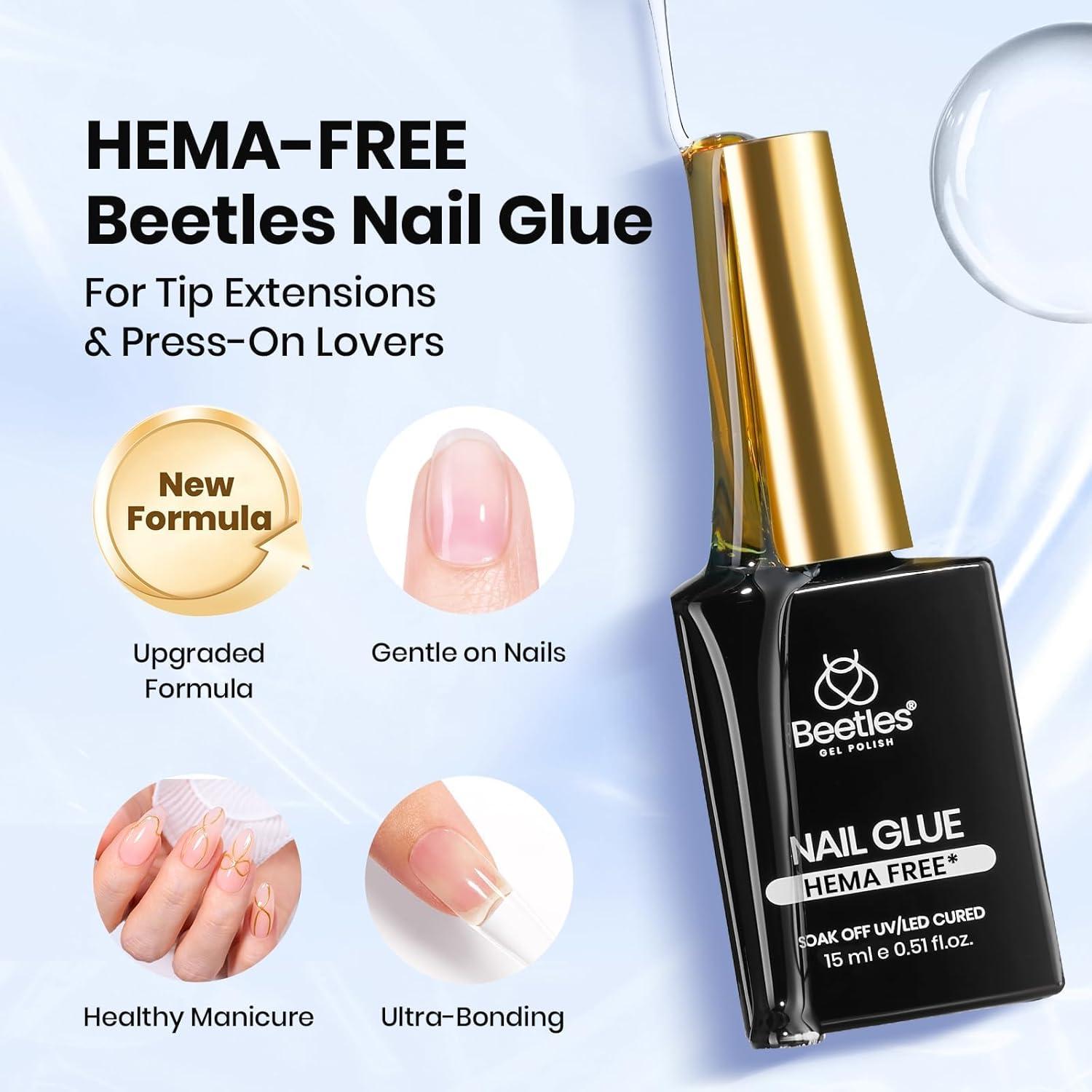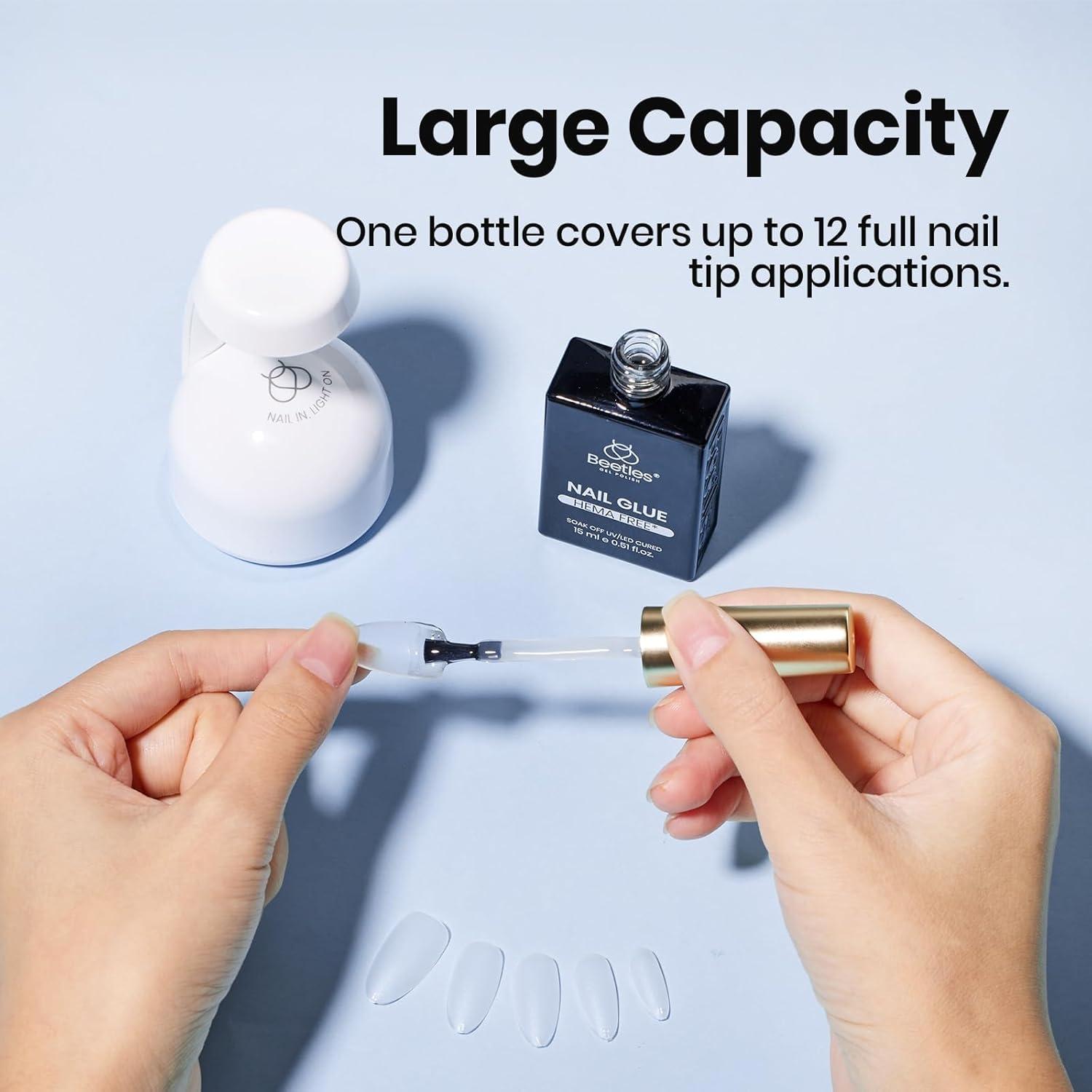 imageBeetles Gel Nail Kit FlatX Square Short 320pcs 16 Sizes Nail tips with 15g Nail Glue Gel HandsFree 75ml Base Gel amp Top Coat Mini Lamp for Acrylic Press On Nail Extension DIY Set at Home015ml HemaFree Nail Glue Gel