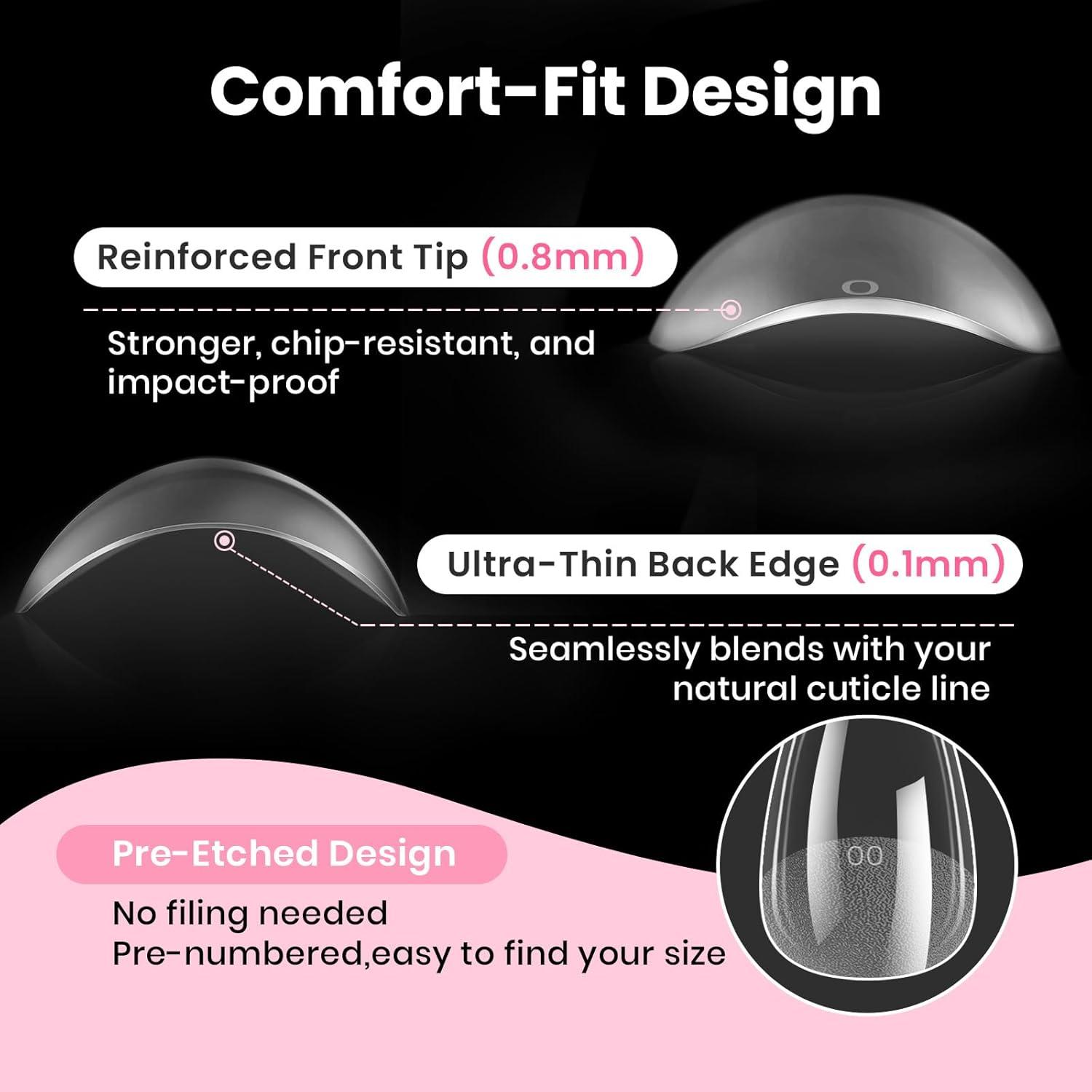 【16 Sizes Pre-numbered Nail Tips】 Never worry about a bad fit. Beetles upgraded nail tips short come in 16 sizes with the numbers“00-14”to quickly find your size. The extended width range ensures a customized fit for diverse nail shapes, offering superior comfort and hold without over-trimming.