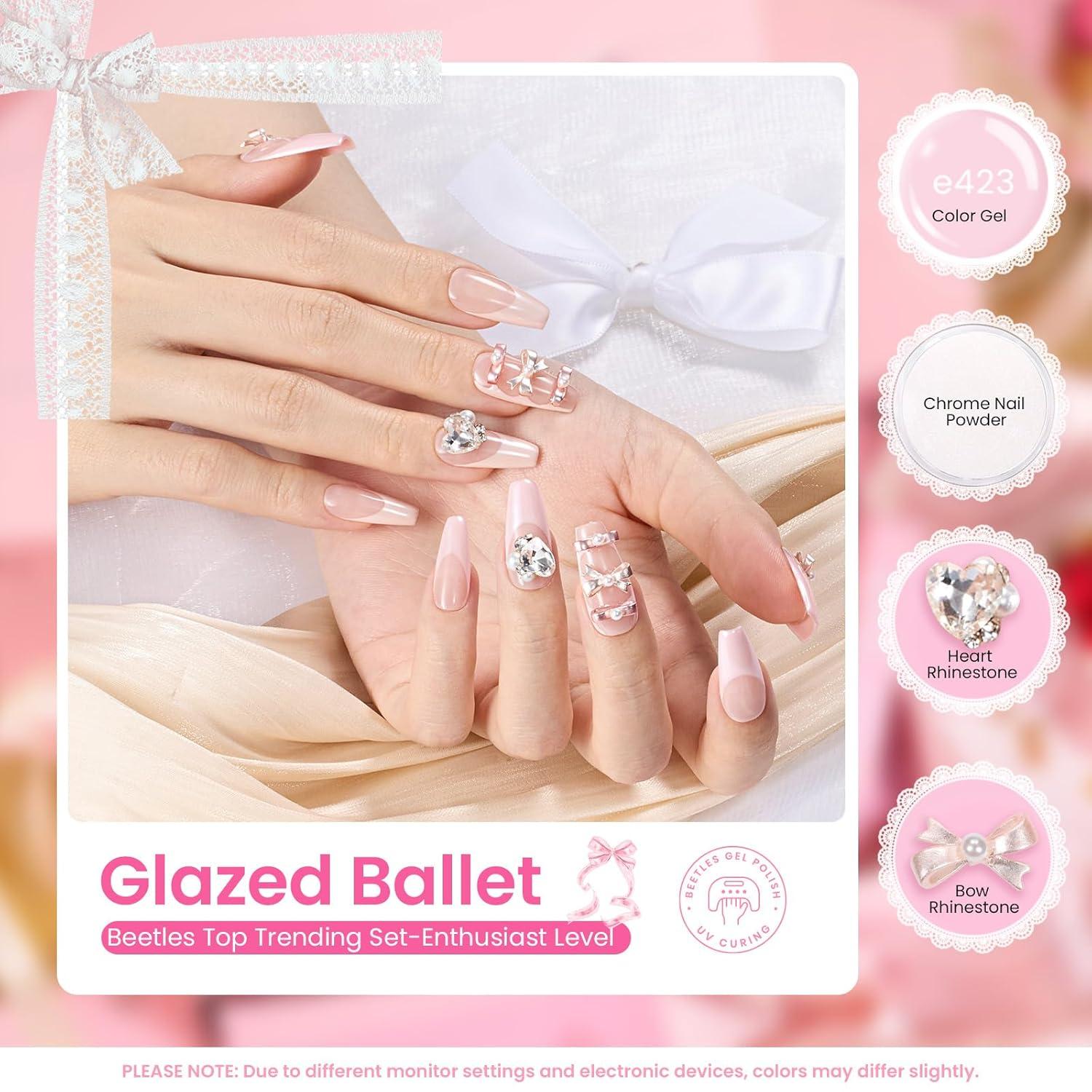 imageBeetles Gel Nail Polish Set Advanced Trend Gel Polish Kit with Chrome Nail Powder Beetles X DIY nail All You Need CoquetteNails Balletcore Manicure Kit Gift for Women Girls