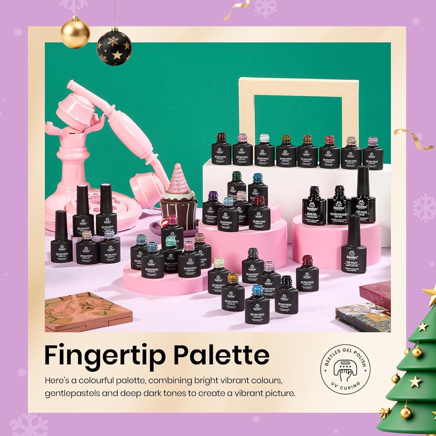Beetles Gel Nail Polish Kit with U V Light - 80Pcs Color Enchantment 55 Colors Gel Polish Starter Kit with Base Top Coat DIY Nails Supply Stickers Manicure Tools Christmas Gift for Women Teens Girls(0-0 Fingertip Palette)