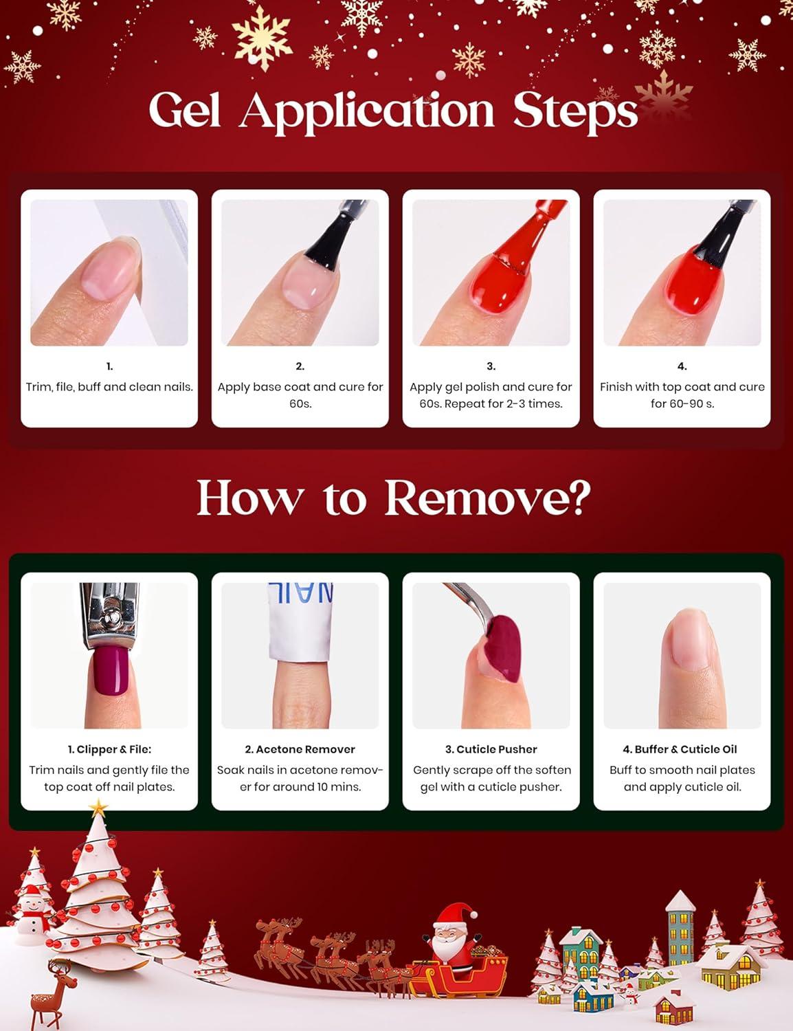 Long-Lasting Shine: With proper application and use of our base and top coat, our gel nail polish can last up to 21 days without chipping or fading. Enjoy a beautiful, long-lasting manicure from the comfort of your own home.