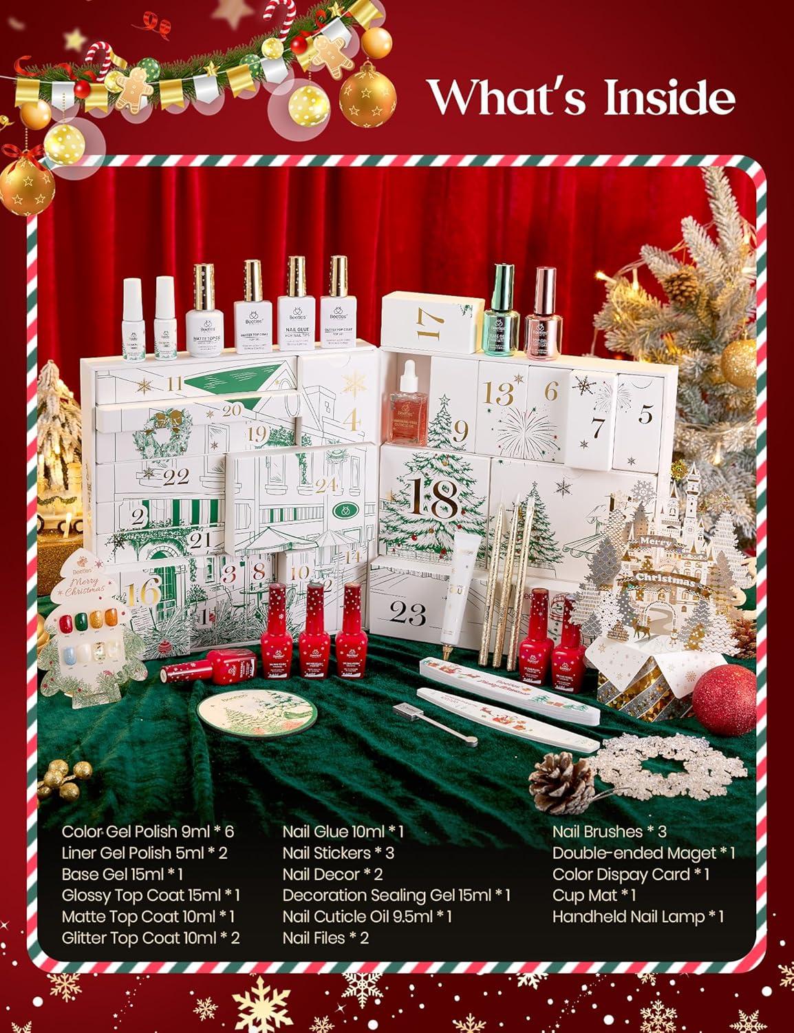 Beetles Gel Nail Polish Kit with U V Light - 80Pcs Color Enchantment 55 Colors Gel Polish Starter Kit with Base Top Coat DIY Nails Supply Stickers Manicure Tools Christmas Gift for Women Teens Girls(Christmas Advent Calendar Merry Glitzmas)