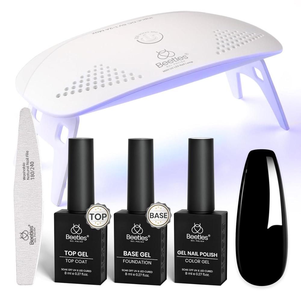 imageBeetles Gel Nail Polish Kit with U V Light Gel Polish Starter Kit Soak Off Nude Gray Purple Mauve Light Pink LED Nail Lamp Base Gel Top Coat DIY Home Valentines Day Gifts for Her0  1 ColorBlack