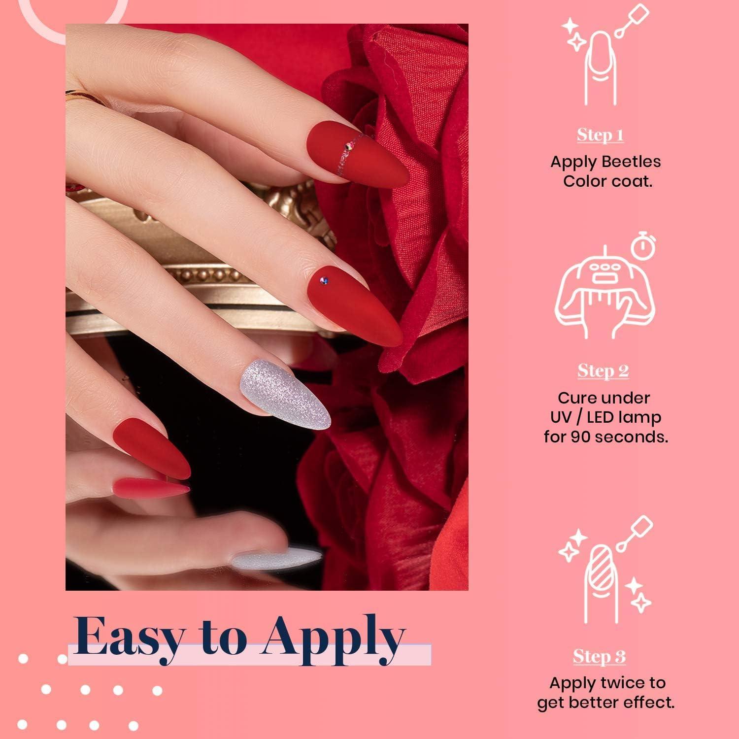 imageBeetles Gel Nail Polish Kit with U V Light Gel Polish Starter Kit Soak Off Nude Gray Purple Mauve Light Pink LED Nail Lamp Base Gel Top Coat DIY Home Valentines Day Gifts for Her1 ColorRed