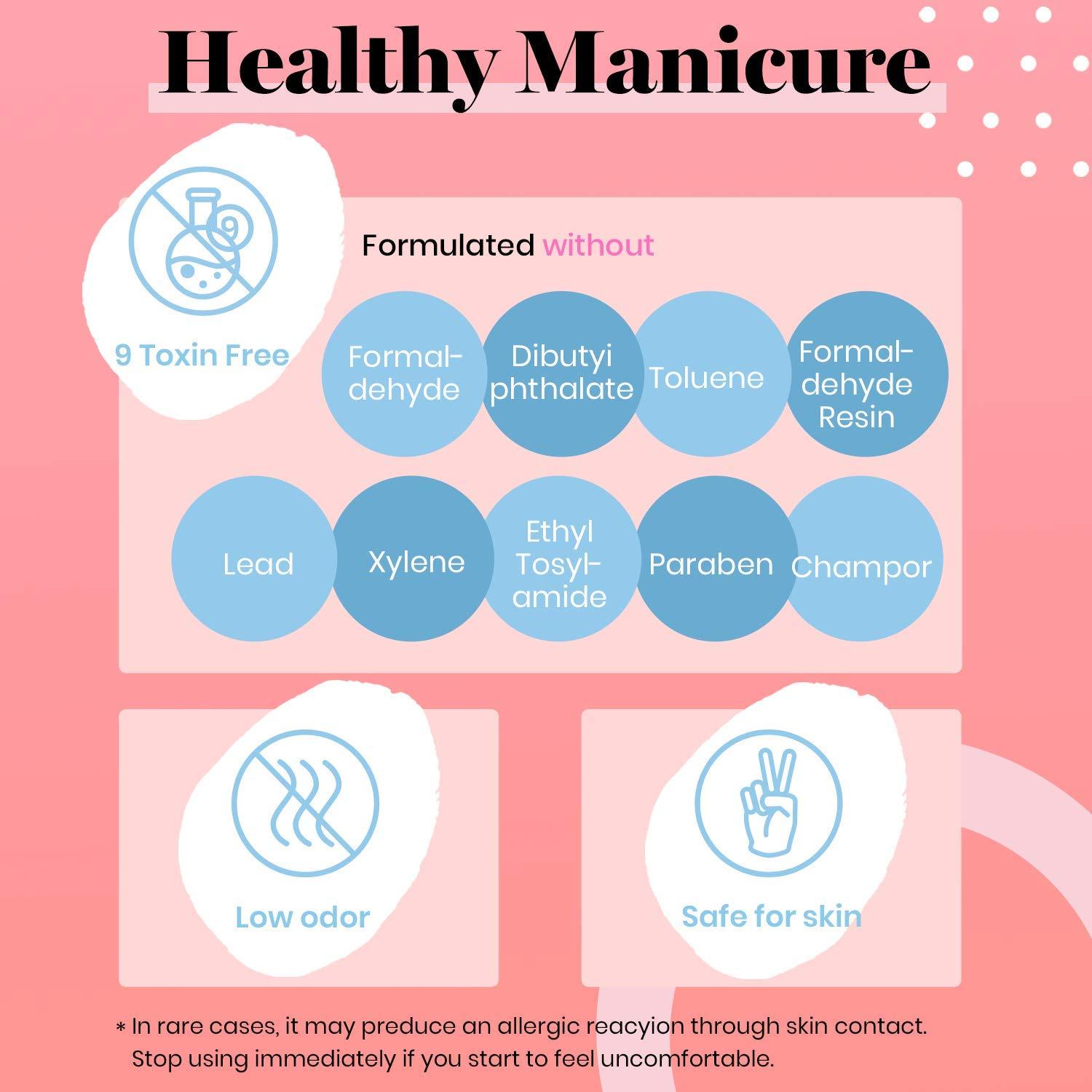 Tips for preventing nail surface from peeling off:(1) Polishing of the nail surface: Polish the front, side, and trailing edge of the nail until there are no reflective spots on the nail surface(2) Nail surface cleaning: It is recommended to use Nail dehydrator to remove oil and moisture from the nail surface(3)Lighting time: It is recommended that the lighting time for base Coat, Color Gel and Top Coat at least 60 seconds.