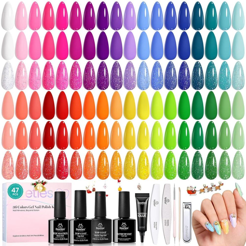 imageBeetles Gel Nail Polish kit with UV Light 108 PCS 55 Colors Valentines Gel Polish Set Base Coat Glossy Matte Glitter Top Coat Gel Polish Glitter Red Green Brown Purple Pink Cat Eye Gel Gift for WomenColorful holidays