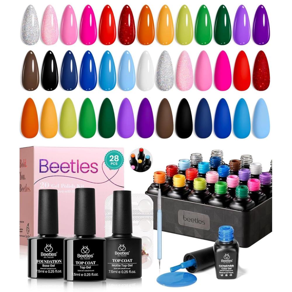 imageBeetles Gel Nail Polish Set 25 Colors Color Dairy Polish Kit Nude Black Brown Red Color Gel Nails with Base Coat Glossy ampamp Matte Top Coat Colorful Bottles UV Led Soak Off Gifts for Women20 Colors Blokecore