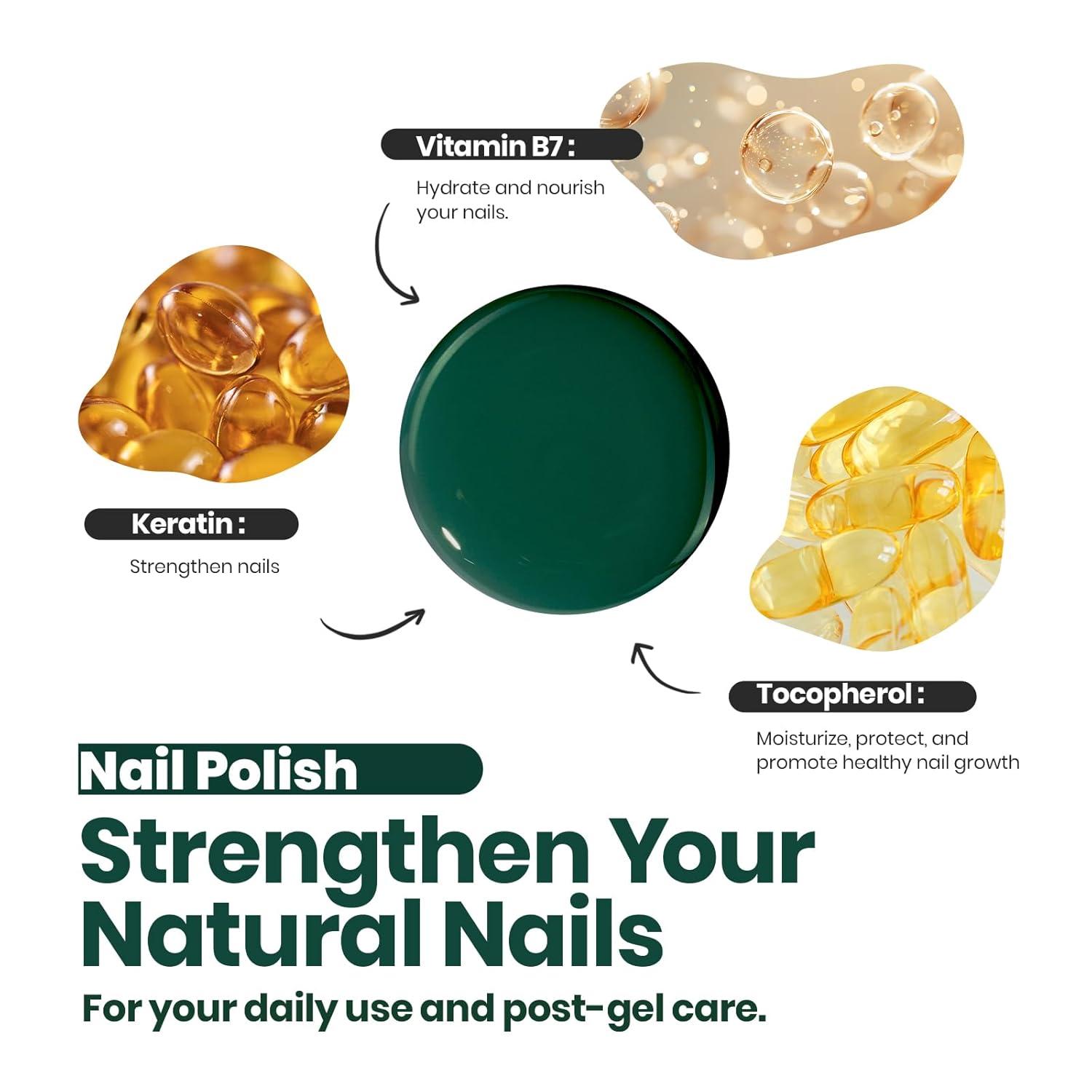 High Gloss Finish:Emerald green quick dry nail polish, trendy colors suitable for all seasons and daily routine life! It is also easy to remove, just dip the cotton pad in an appropriate amount of nail remover and gently wipe the surface.