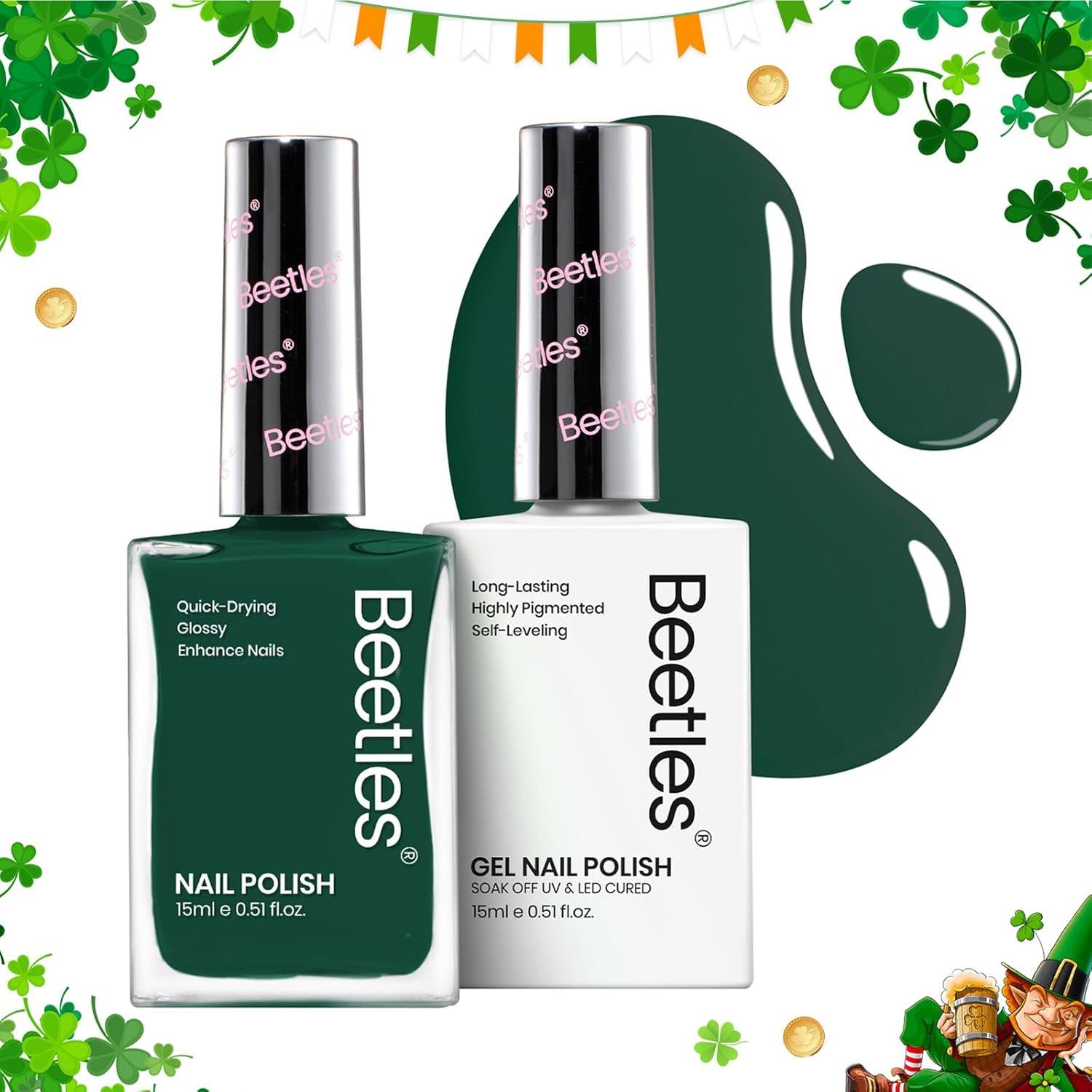 Beetles Gel Nail Set Green 2Pcs 15ml NailPolish and Fast Dry Nail Polish Forest Green Collection Air-Drying & Long Lasting Nail Polish and Soak Off Uv Led Gel Art Effect for Nail Salon DIY Manicure(Lucky Clover)