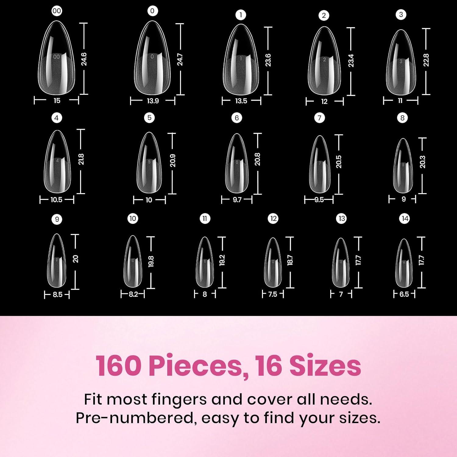 imageBeetles Gel Nail Tips FlatX  Coffin Short 160pcs 16 Sizes PreEtched Half Matte Full Cover Soft Acrylic False Nail Tips Clear Press on Easy DIY Extension Salon for Flat ampamp Natural Nail Beds02Medium Almond 160pcs FlatX Nail Tips