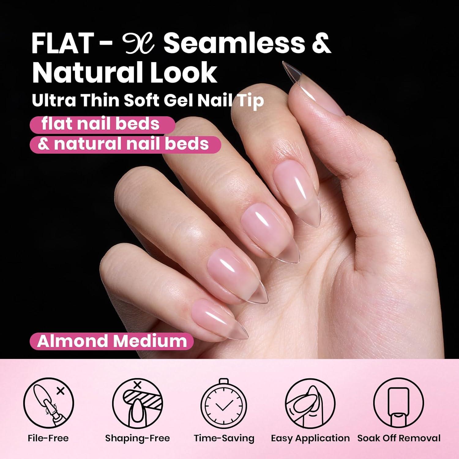 Beetles Gel Nail Tips Flat-X - Coffin Short, 160pcs 16 Sizes, Pre-Etched Half Matte Full Cover Soft Acrylic False Nail Tips Clear Press on Easy DIY Extension Salon for Flat & Natural Nail Beds(0-2-Medium Almond 160pcs (Flat-X Nail Tips))