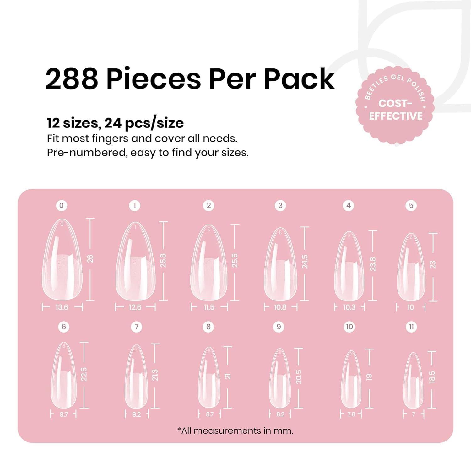 Beetles Gel Nail Tips Short Coffin Pre-Etched Nail Tips, 12 Sizes 288 Pcs Full Cover Soft Tips Half Matte False Nails Clear Acrylic Glue on Nails Extension DIY Manicure Gifts for Women(1-3-Almond Medium 288pcs(Etch X Nail Tips))