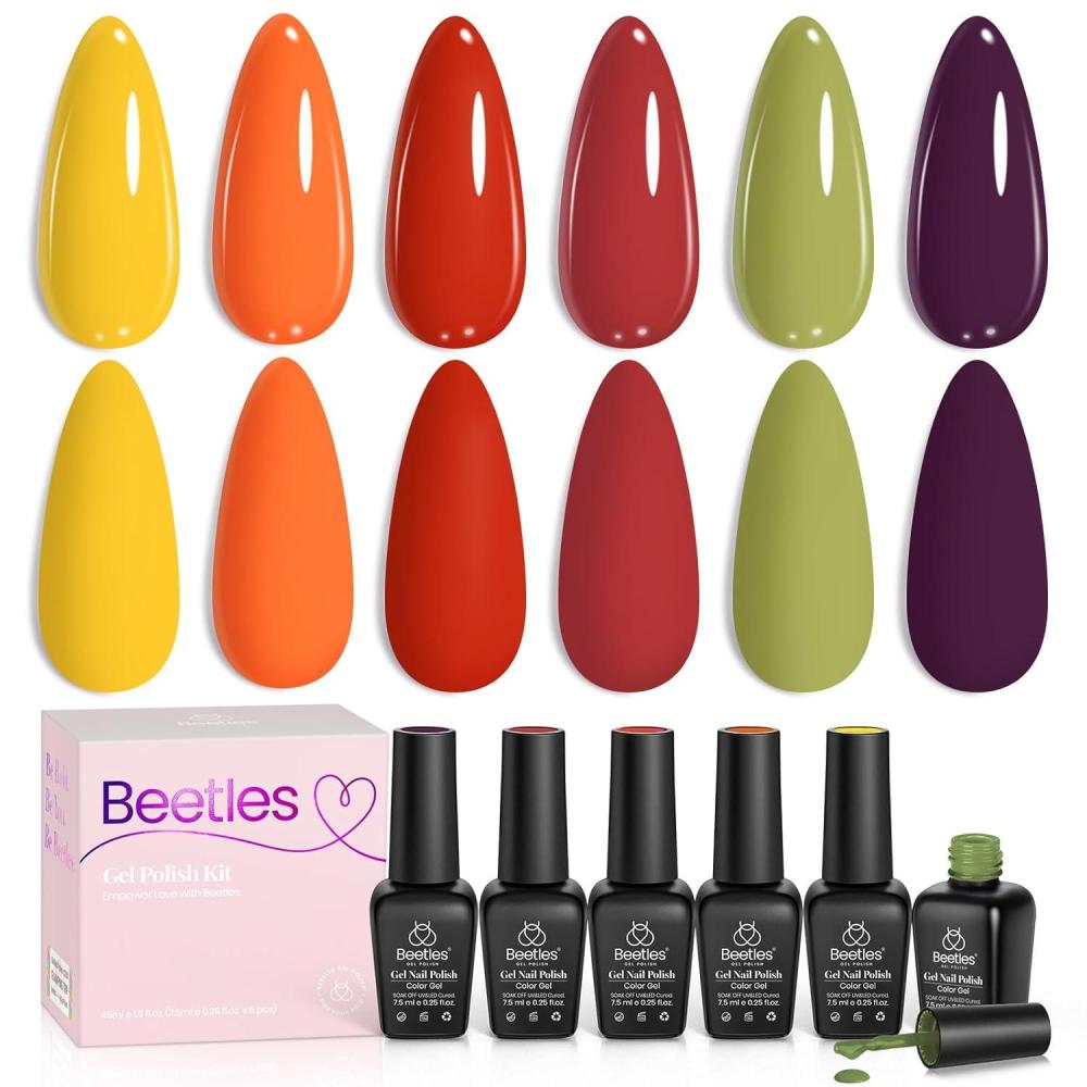 imageBeetles Gel Polish Soft Beam Cat Eye Gel Nail Polish Set  6 Colors Nude Pink Brown Purple Glitter Gel Nail Kit Magnetic Shine Soak Off UV Winter Salon DIY Manicure Gift for Women000Sunset Leaves