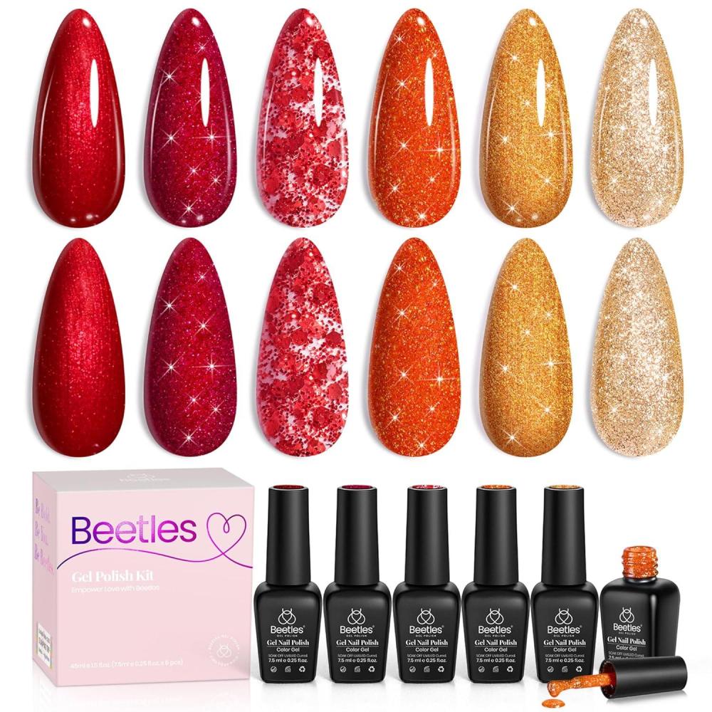 imageBeetles Gel Polish Soft Beam Cat Eye Gel Nail Polish Set  6 Colors Nude Pink Brown Purple Glitter Gel Nail Kit Magnetic Shine Soak Off UV Winter Salon DIY Manicure Gift for Women6 Colors Joyful Future