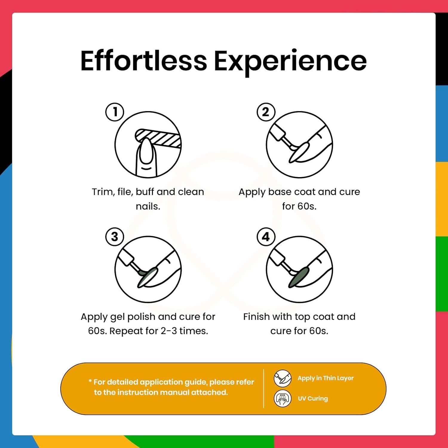 【Speed Curing with Uv/Led Lamp】The cat eye gel polish kit needs to be cured under the uv/led light. The average time for uv/led lights is 60-120 secs. It remains sticky after curing and must be used with a base coat and top coat! (Note:This item does not include a base&top coat, which needs to be purchased separately)