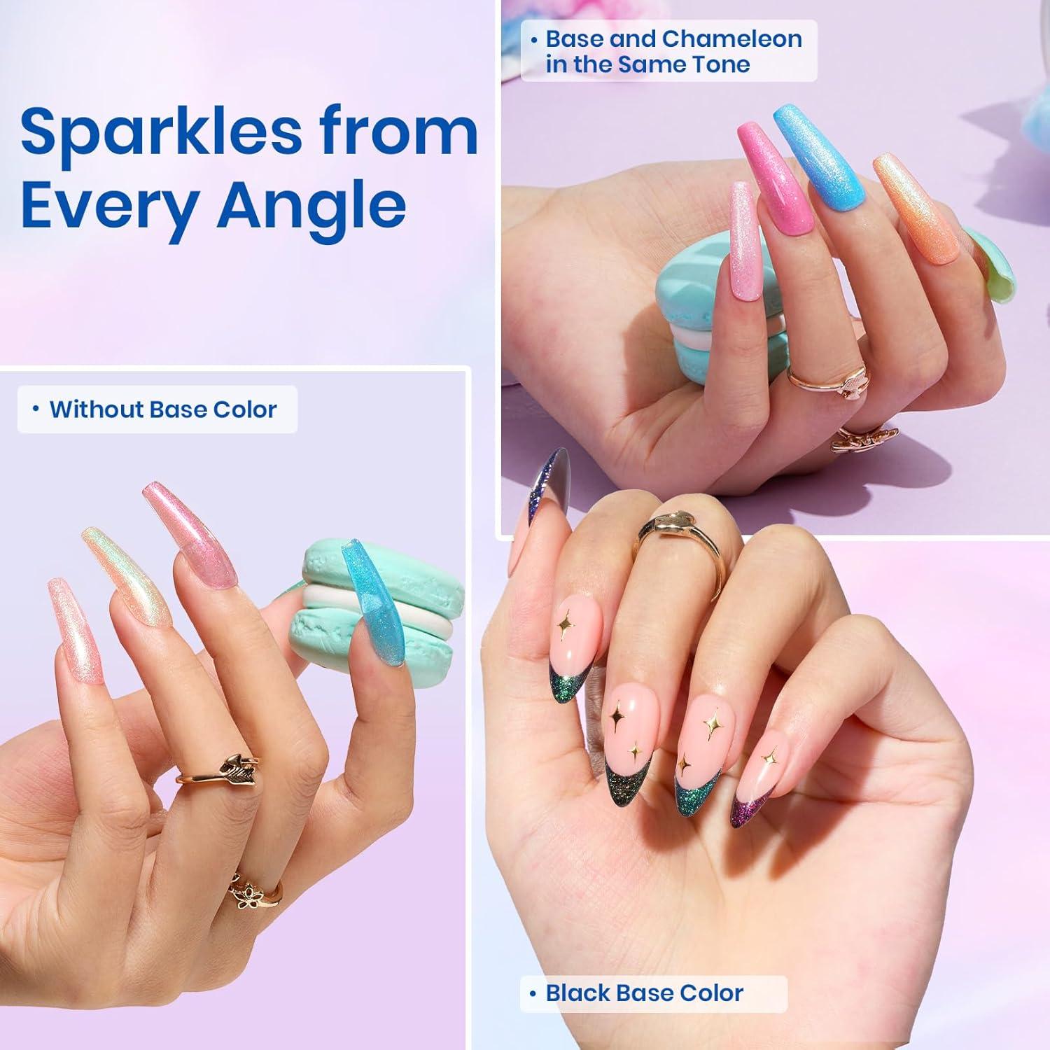 imageBeetles Gel Polish Soft Beam Cat Eye Gel Nail Polish Set  6 Colors Nude Pink Brown Purple Glitter Gel Nail Kit Magnetic Shine Soak Off UV Winter Salon DIY Manicure Gift for WomenMulticolored Glitter