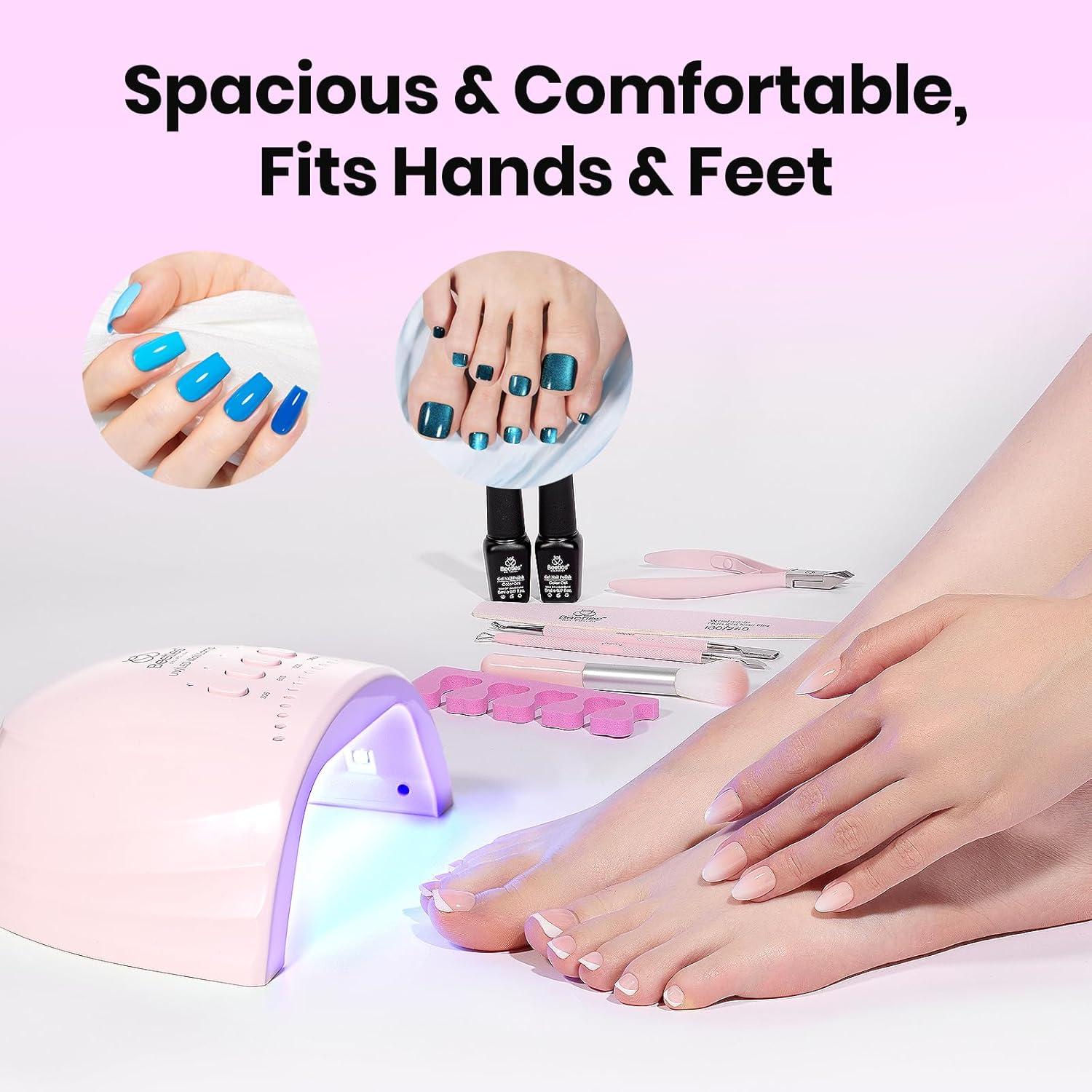 【Compact Nail Lamp】 Upgraded Design for Even Curing. When curing all five fingers together, the thumb may not dry evenly. Therefore, we recommend curing the thumb separately and then curing the index, middle, ring, and pinky fingers together. The compact design takes up less space on the nail desktop, making it convenient and portable.