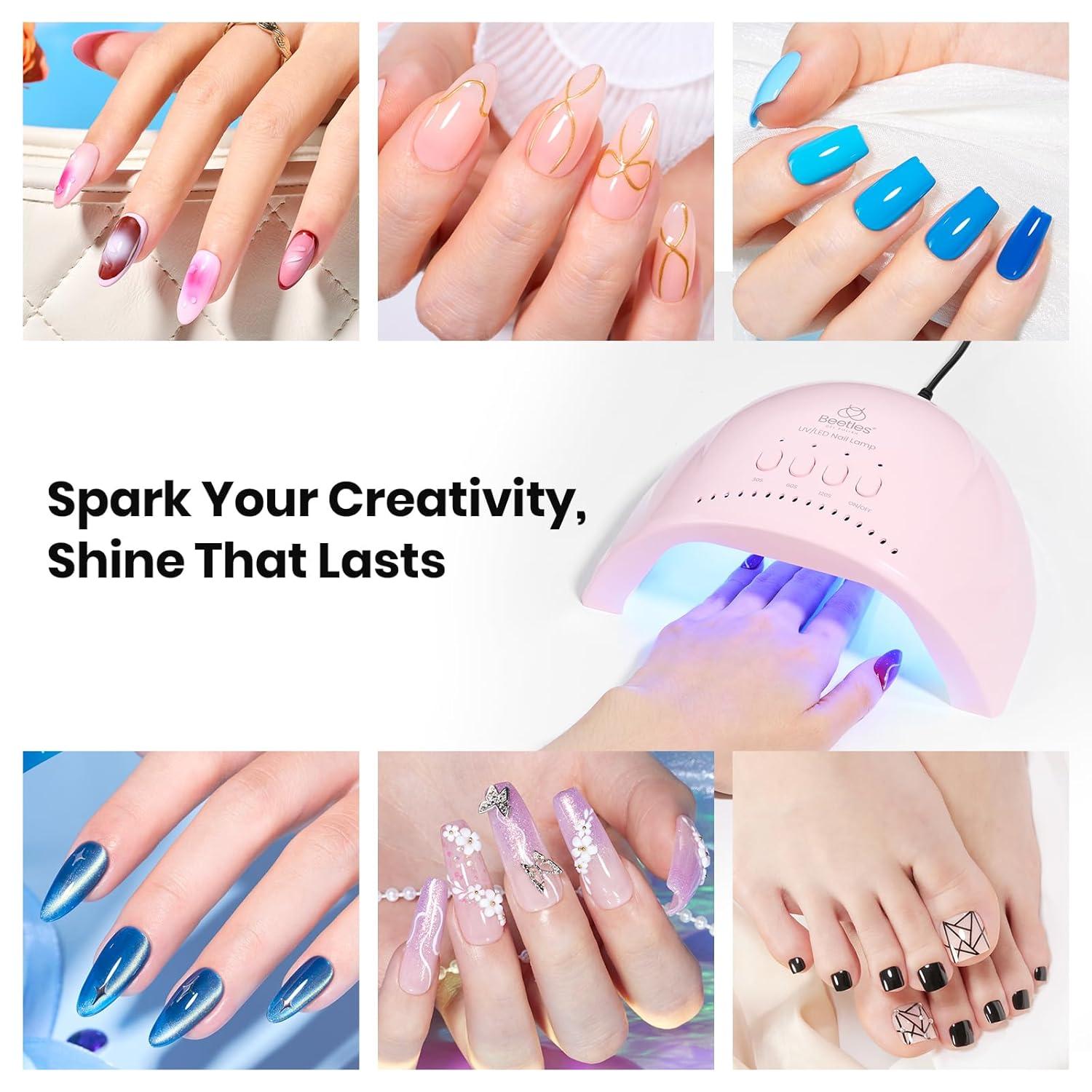 【Curing All Gel Polishes】Beetles nail dryer can quickly cure all nail gel brands, such as Base Coat, Top Coat, Color Gel, Beetles Builder Gel, Poly Nail Gel, Blooming Gel, Hard Gel, Sculpture Gel, Nail Glue Gel, etc. (not for regular nail polish). Beetles UV LED Lamp makes your beauty more shiny, natural, and attractive.