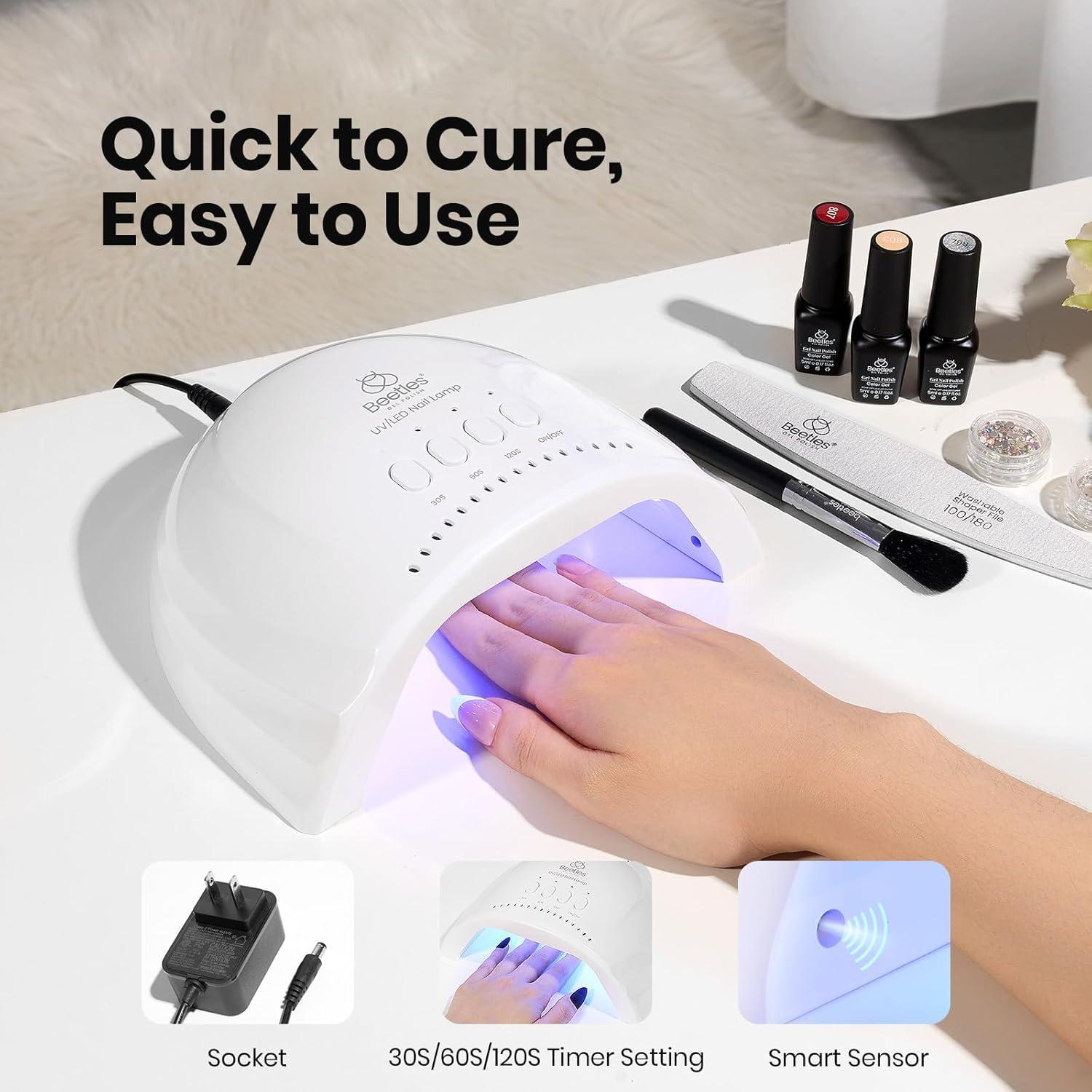 【What You Get】Advance-design Nail Lamp*1, 1.8m DC 3.5 Cable *1, and Instruction Manual *1. Applied with Beetles Nail Gel Art System and Nail Essentials Together, you can enjoy a Safer, Healthier, and Affordable Home Nail Experience with Family and Friends, saving Time and Money.