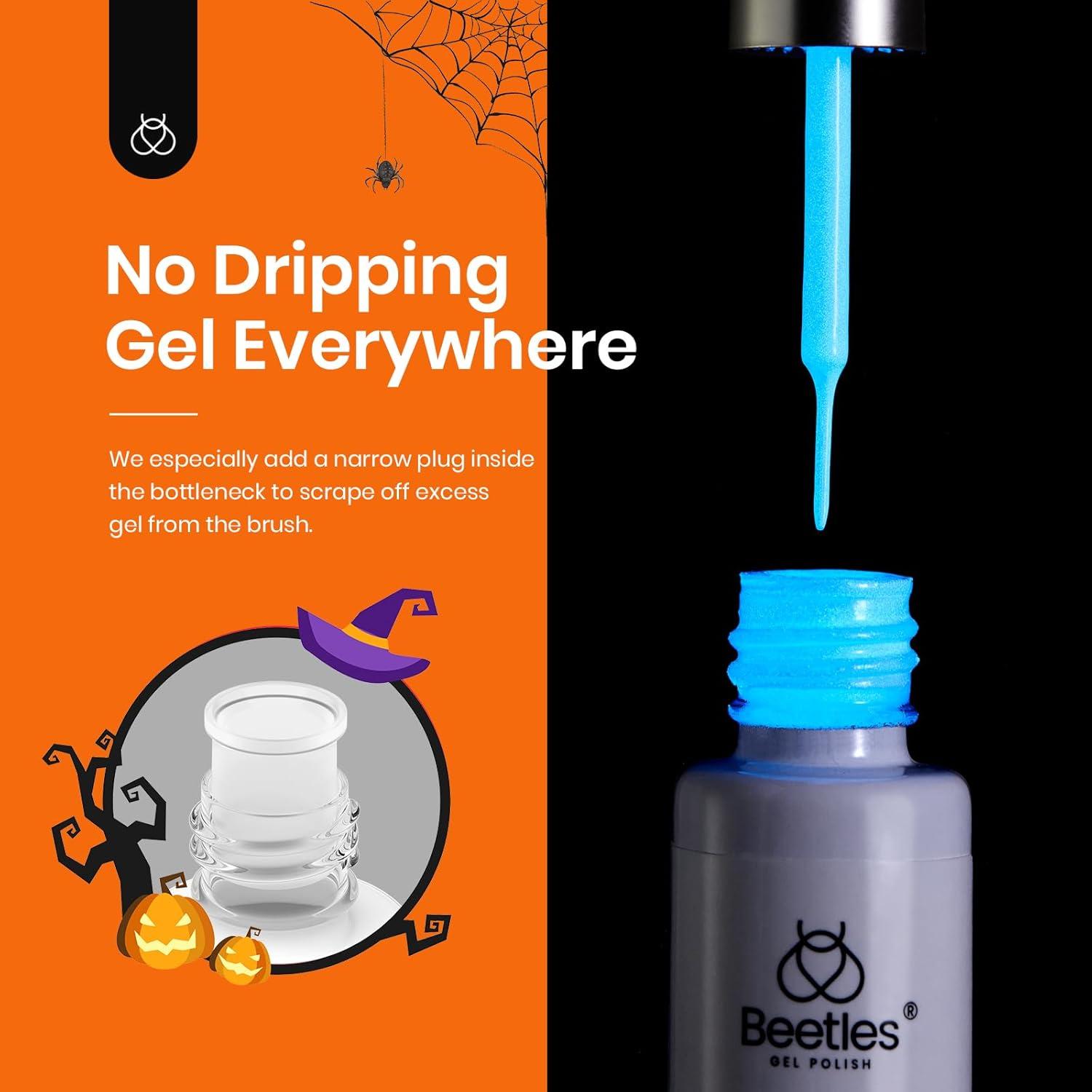 【Speed Curing with UV Nail Lamp】: Beetles halloween gel nail polish liner gel polish halloween style need to be cure 60-120 seconds,quick drying and skin friendly,suitable for various nails. With low smell, middle consistency, self-evenly, no shrink and edge.When the fluorescent effect is about to disappear, UV light can be used to illuminate the nails to extend the display time of the fluorescent effect (LED light cannot achieve the effect)