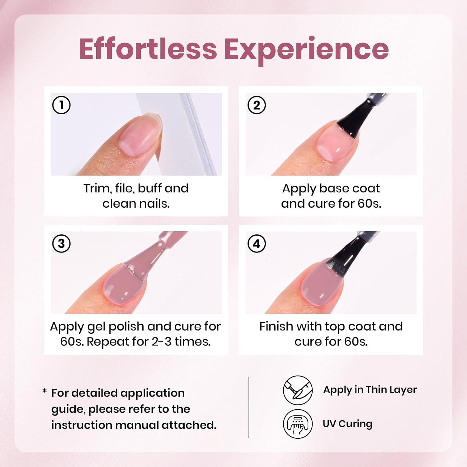 UV / LED Gel Nail Polish:Designed to cure under UV or LED lamps, creating a glossy, long-lasting finish that keeps nails looking fresh and vibrant for weeks.