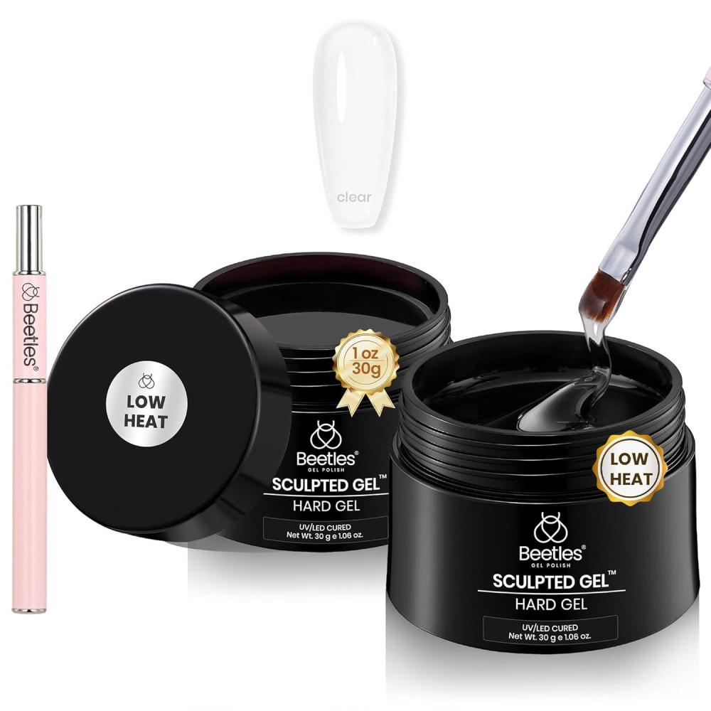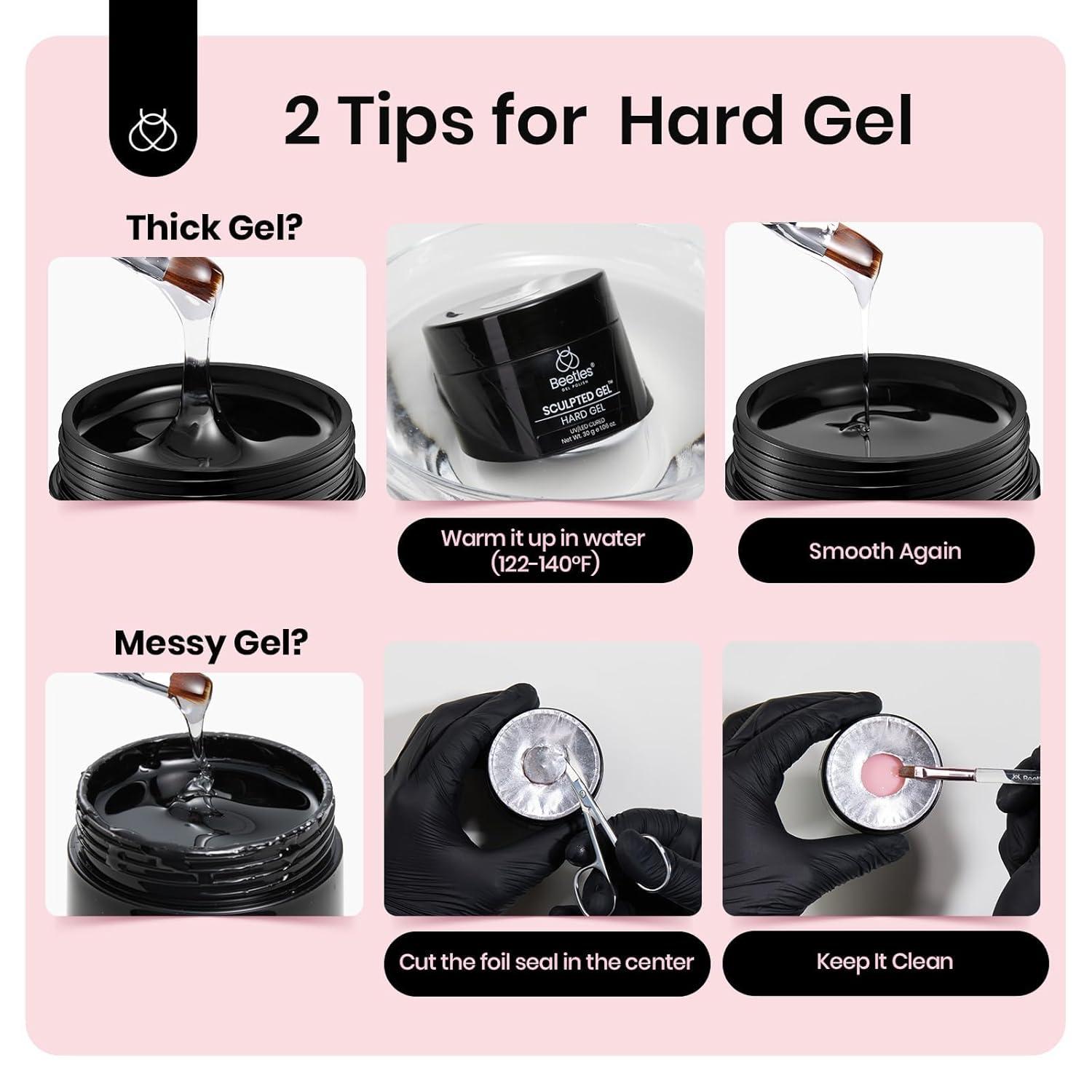 Beetles Hard Gel for Nails Kit Classic Neutral 3 Colors 9 in 1 Nail Extension Sculpting High Hardness for Salon Professionals Nude & Clear Builder Nail Gel UV & LED Cured(2 pcs low heat clear hard gel)