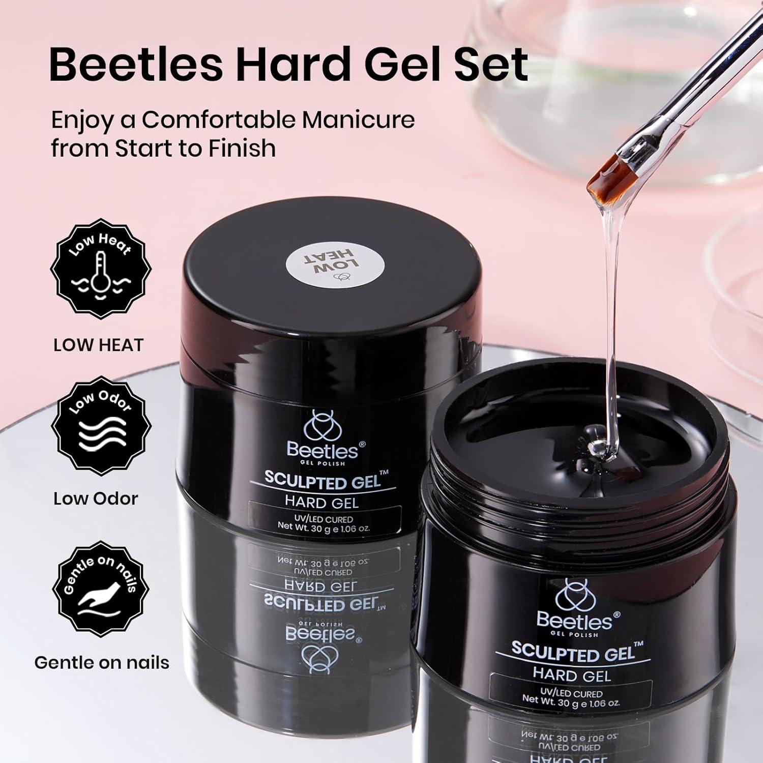 Beetles Hard Gel for Nails Kit Classic Neutral 3 Colors 9 in 1 Nail Extension Sculpting High Hardness for Salon Professionals Nude & Clear Builder Nail Gel UV & LED Cured(1 oz Low Heat -Clear)