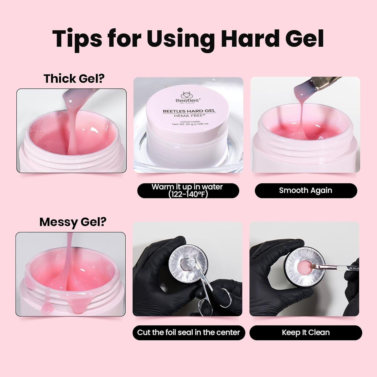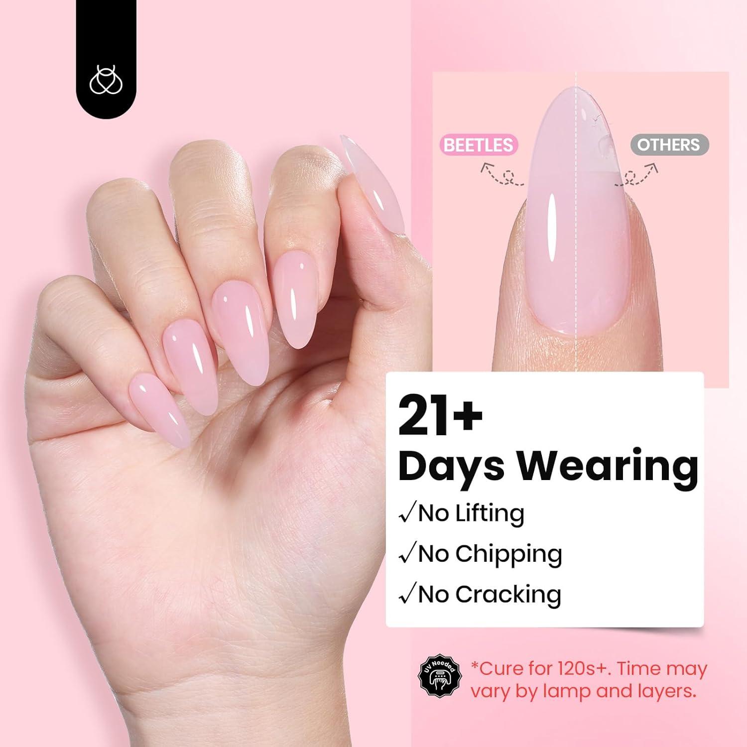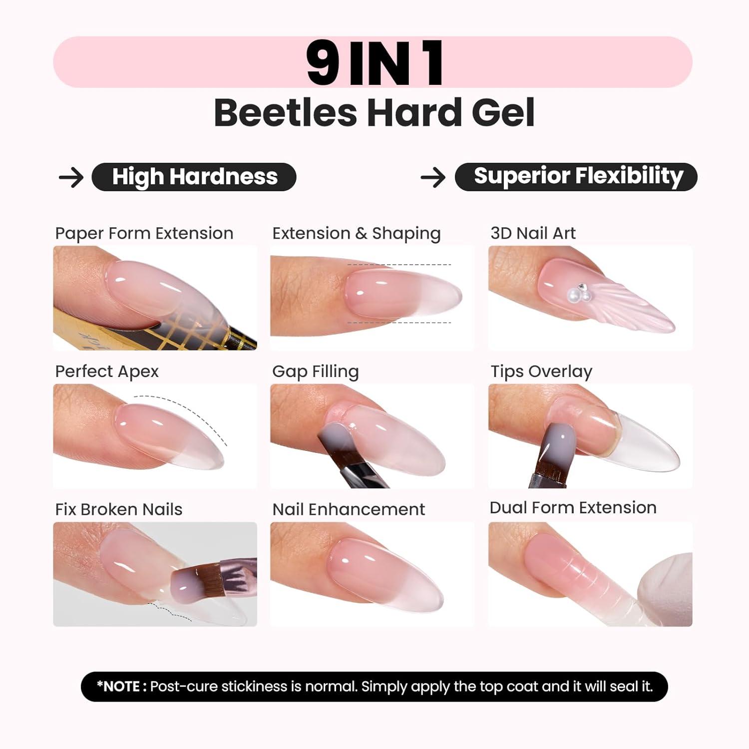 Beetles HEMA-Free Hard Gel Set-Dewy Breeze 0.5 oz Mini Size 9 in 1 Nail Extension Sculpting Apex Building for First-Time Users Professionals,Clear Builder Nails Gel, UV & LED Lamp Needed(1.06 oz-Pink)