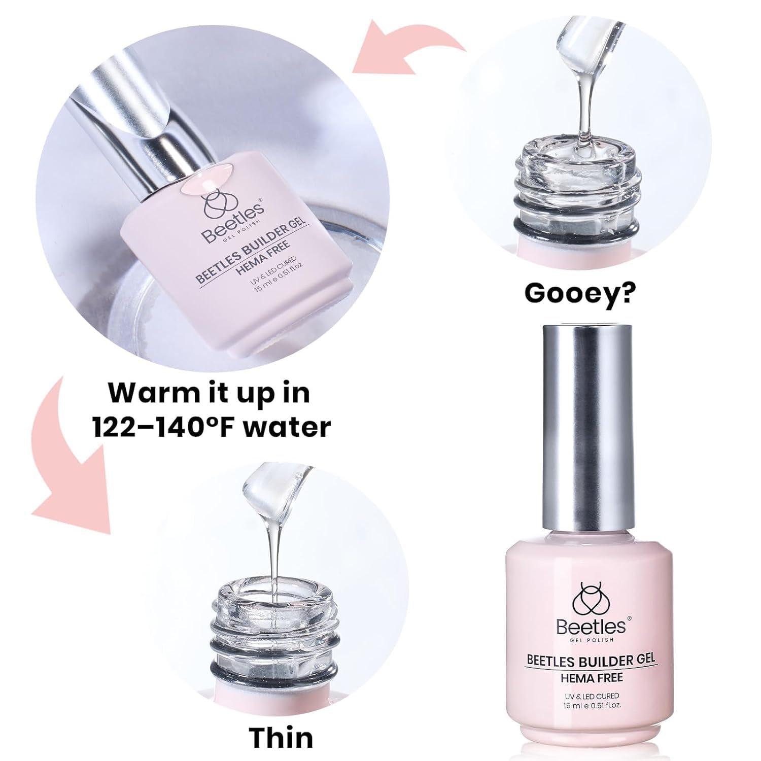 Beetles HEMA-FREE & TPO FREE Builder Nail Gel-Peach Skin 2 Colors Strengthening Nails Building Apex & Extension Clear & Jelly Nude Pink Builder Gels for Beginner DIY Salon at Home, UV & LED Lamp Need(A3-HEMA Free|Jelly Water Pink)