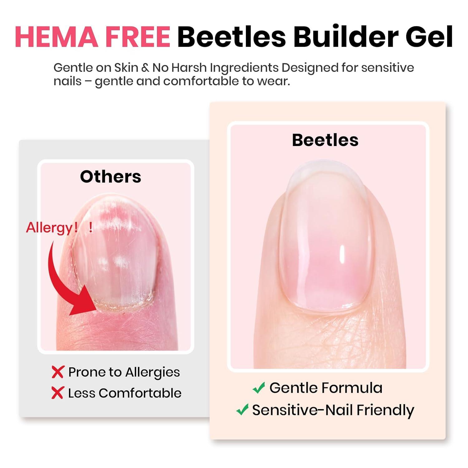 Beetles HEMA-FREE & TPO FREE Builder Nail Gel-Peach Skin 2 Colors Strengthening Nails Building Apex & Extension Clear & Jelly Nude Pink Builder Gels for Beginner DIY Salon at Home, UV & LED Lamp Need(A5-HEMA Free|Sheer Glitter Pink)