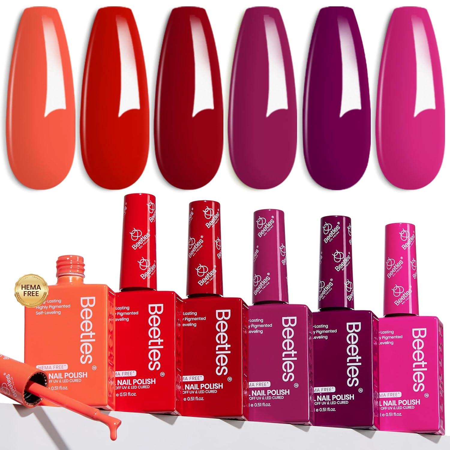imageBeetles Jelly Gel Nail Polish Set  6 Colors 15ML Full Size Hema Free Nude Pink Brown Milky White Sheer Gel Polish Kit Translucent Effect Soak Off UV Colorful Bottle Gel Gift for WomenFiery Passion