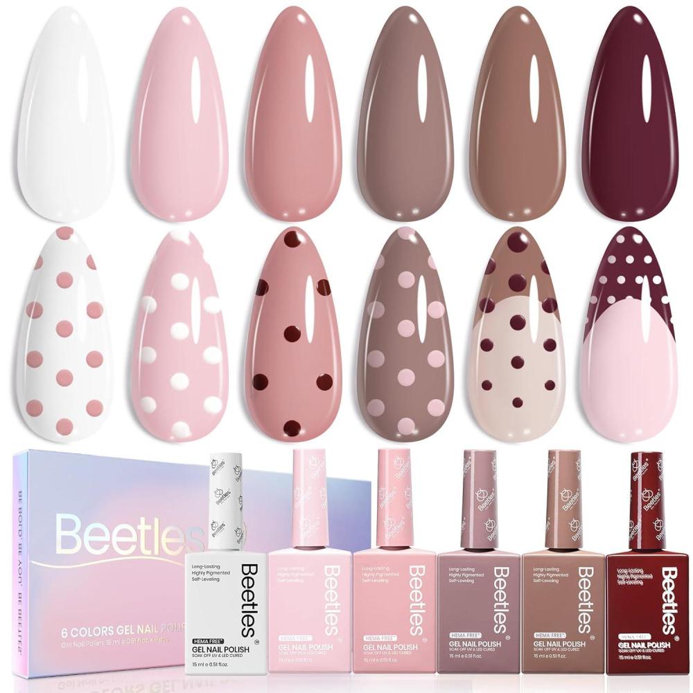 imageBeetles Jelly Gel Nail Polish Set  6 Colors 15ML Full Size Hema Free Nude Pink Brown Milky White Sheer Gel Polish Kit Translucent Effect Soak Off UV Colorful Bottle Gel Gift for WomenMinimal Essence