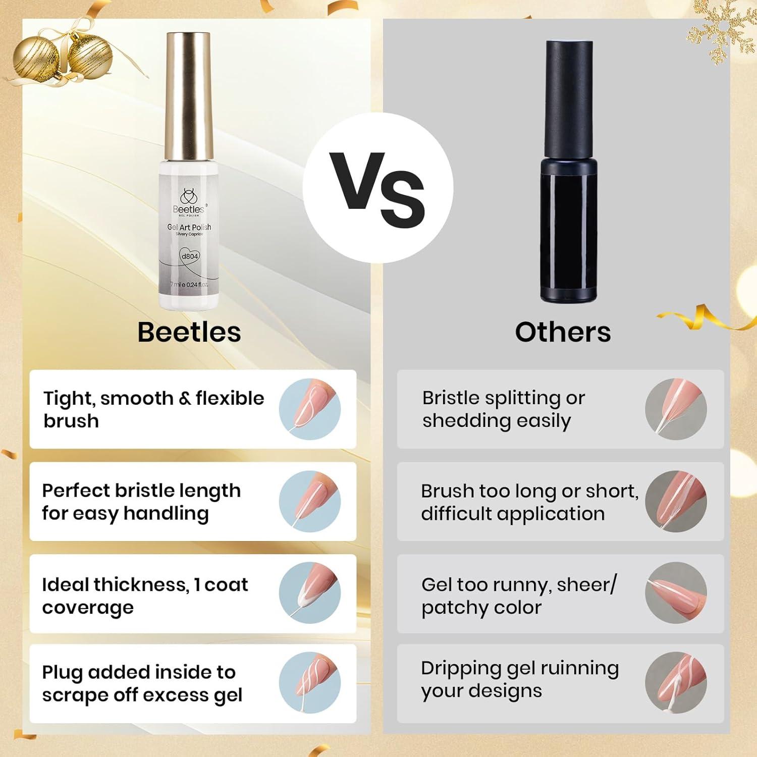 Beetles Metallic Gel Nail Polish Liner Set Silver Bronze Gold 2pcs Gel Liner Nail Art Chrome 3D High-Gloss Effect for Nail Paint Design with Thin Brush DIY French Manicure Curing Requires at Home(Stamper Gel Polish)