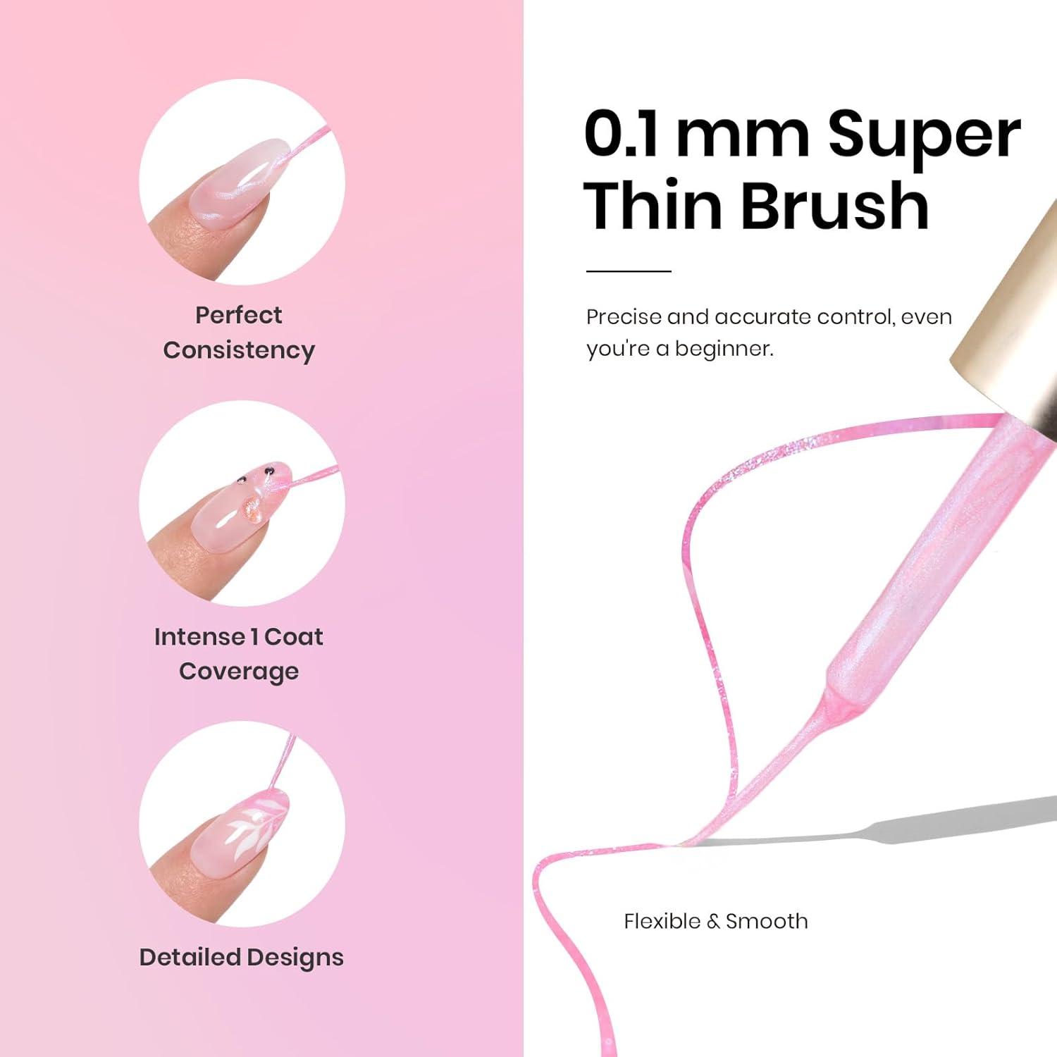 【Built-in Thin Brush】Each bottle has a thin pen brush, no need to change and wash clean the drawing liner pen brush when doing the nail art.The brush is soft and slender, with good resilience, which can draw fine lines, change angles, and paint various curves at will, and operate smoothly.