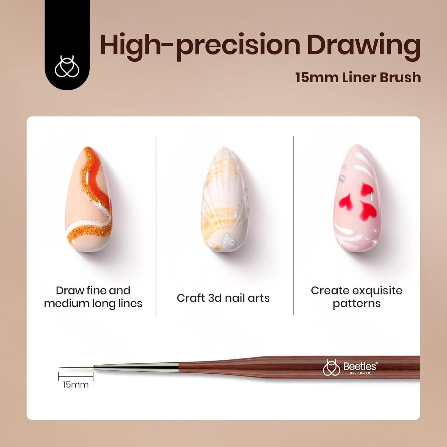 imageBeetles Nail Art Brushes Set Gel Polish Nail Art Design Pen Painting Tools with Detail Brush Gradient Brush and Nail Round Pen for Salon DIY at Home Manicure5pcs Nail Brush