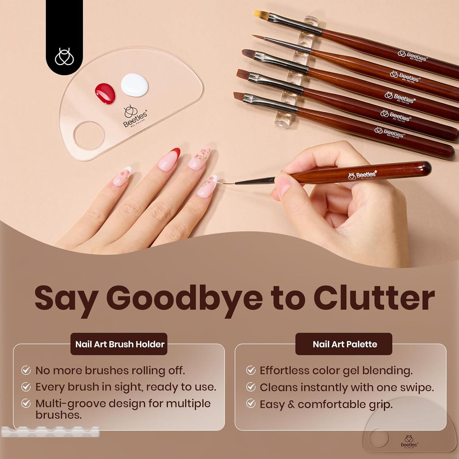 imageBeetles Nail Art Brushes Set Gel Polish Nail Art Design Pen Painting Tools with Detail Brush Gradient Brush and Nail Round Pen for Salon DIY at Home Manicure6Pcs Elegant Nail Art Brushes