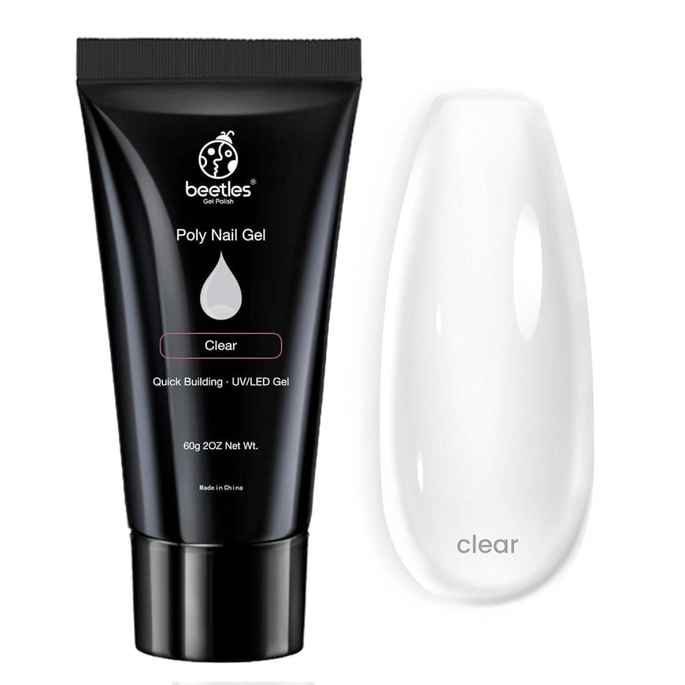 Beetles Nail Extension Gel, 60g Clear Builder Nail Gel Nail Art Design Nail Enhancement Gel for Beginner & Professional Easy DIY Fall Nails at Home Salon Manicure for Women, UV & LED Lamp Needed(0-60g-Clear1.0)