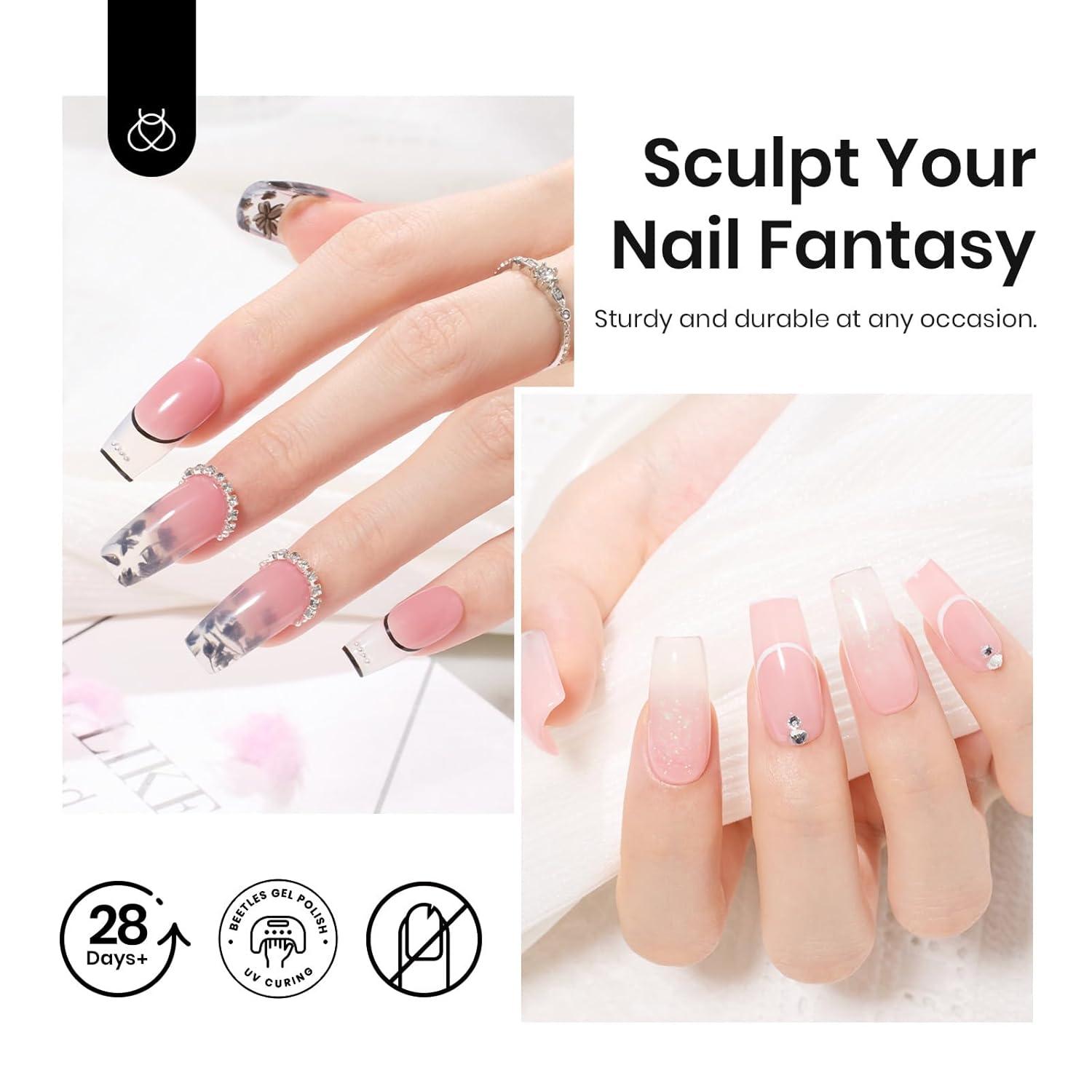 Good Quality: Beetles nail extension gel for nails is strong and flexible, making it easier to control. Natural ingredients are less harmful to nails. Nail extension gel for nails can last up to about one month or even longer with proper nail prep (filing, buffering, and cleaning). For better adhesion, you can also apply nail dehydrator and primer, which can make the nail last much longer.