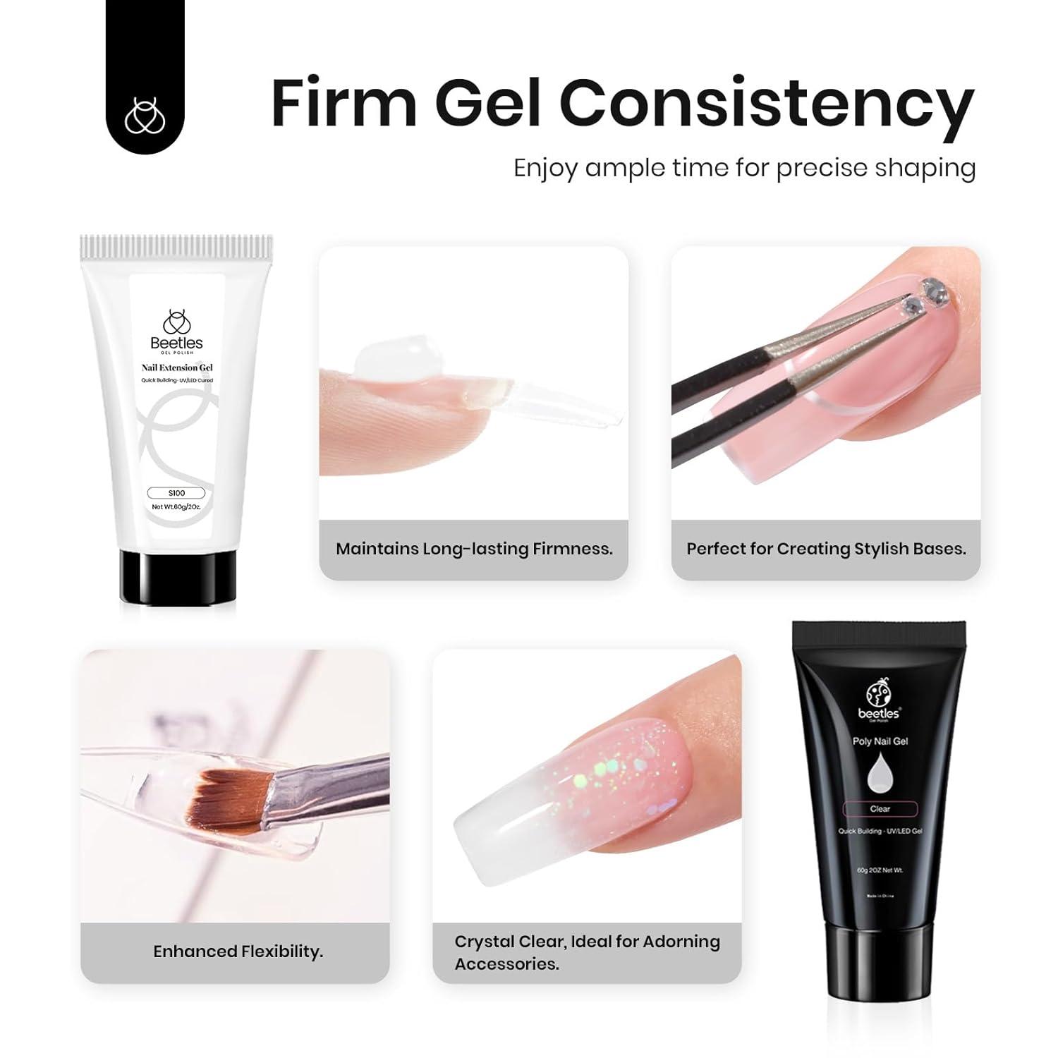 Beetles Nail Extension Gel, 60g Clear Builder Nail Gel Nail Art Design Nail Enhancement Gel for Beginner & Professional Easy DIY Fall Nails at Home Salon Manicure for Women, UV & LED Lamp Needed(0-Clear2.0-New upgrade)