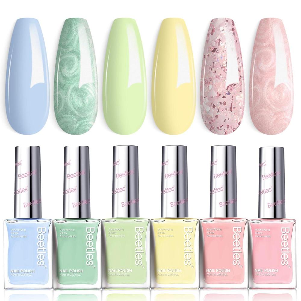 imageBeetles Pastel Nail Polish Set  Butter Kiss 6 Colors Glitter Spring Nail Polish Quick Dry Set Spring Nails Art Long Lasting Shine DIY Manicure Easter Nails Gift for Her0Butter Kiss