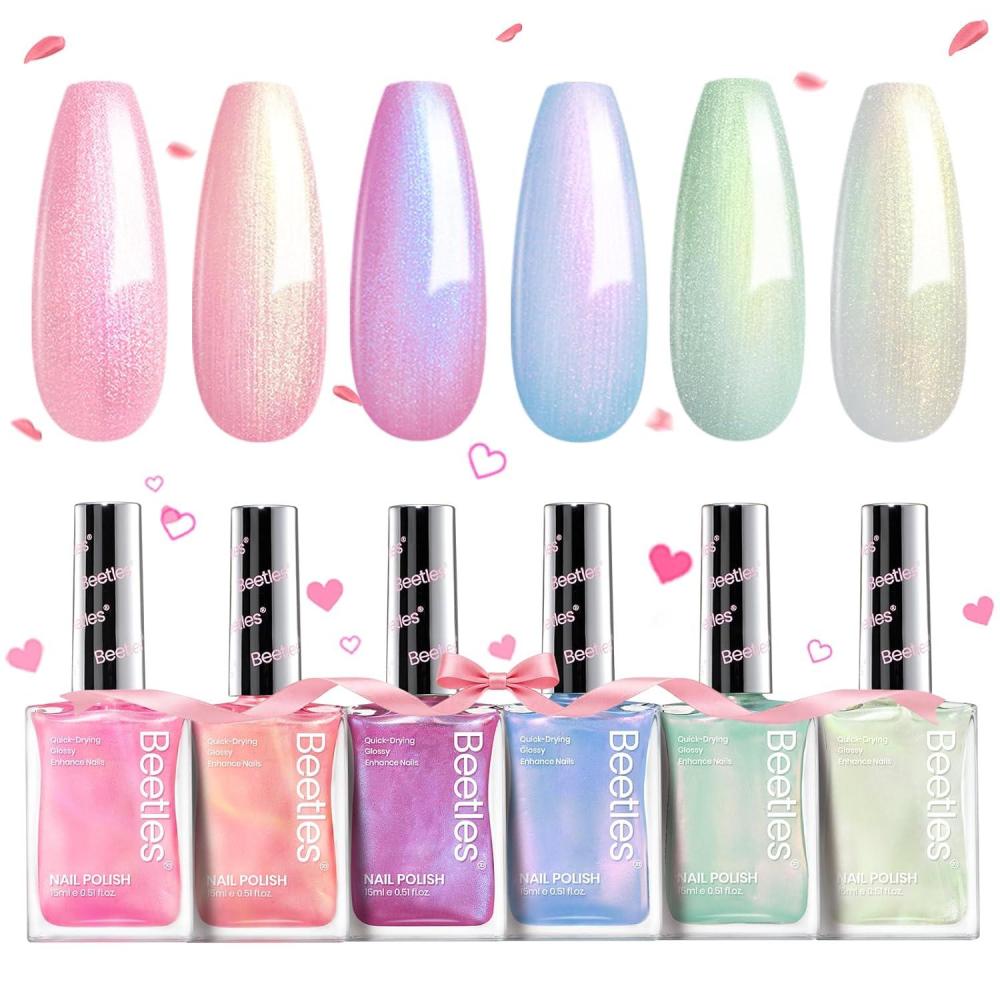 imageBeetles Pastel Nail Polish Set  Butter Kiss 6 Colors Glitter Spring Nail Polish Quick Dry Set Spring Nails Art Long Lasting Shine DIY Manicure Easter Nails Gift for Her0Starlit Veil